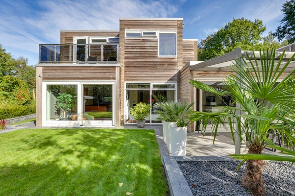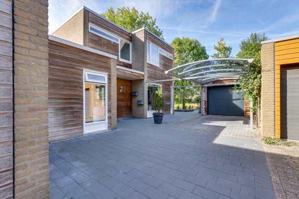 - Vrijstaand hout, garage met carport