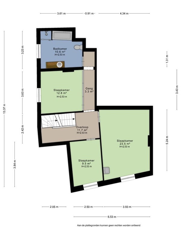 • De geschakelde woning heeft een woonoppervlakte van 346 m² en beschikt over 7 kamers, waarvan 5 slaapkamers;
