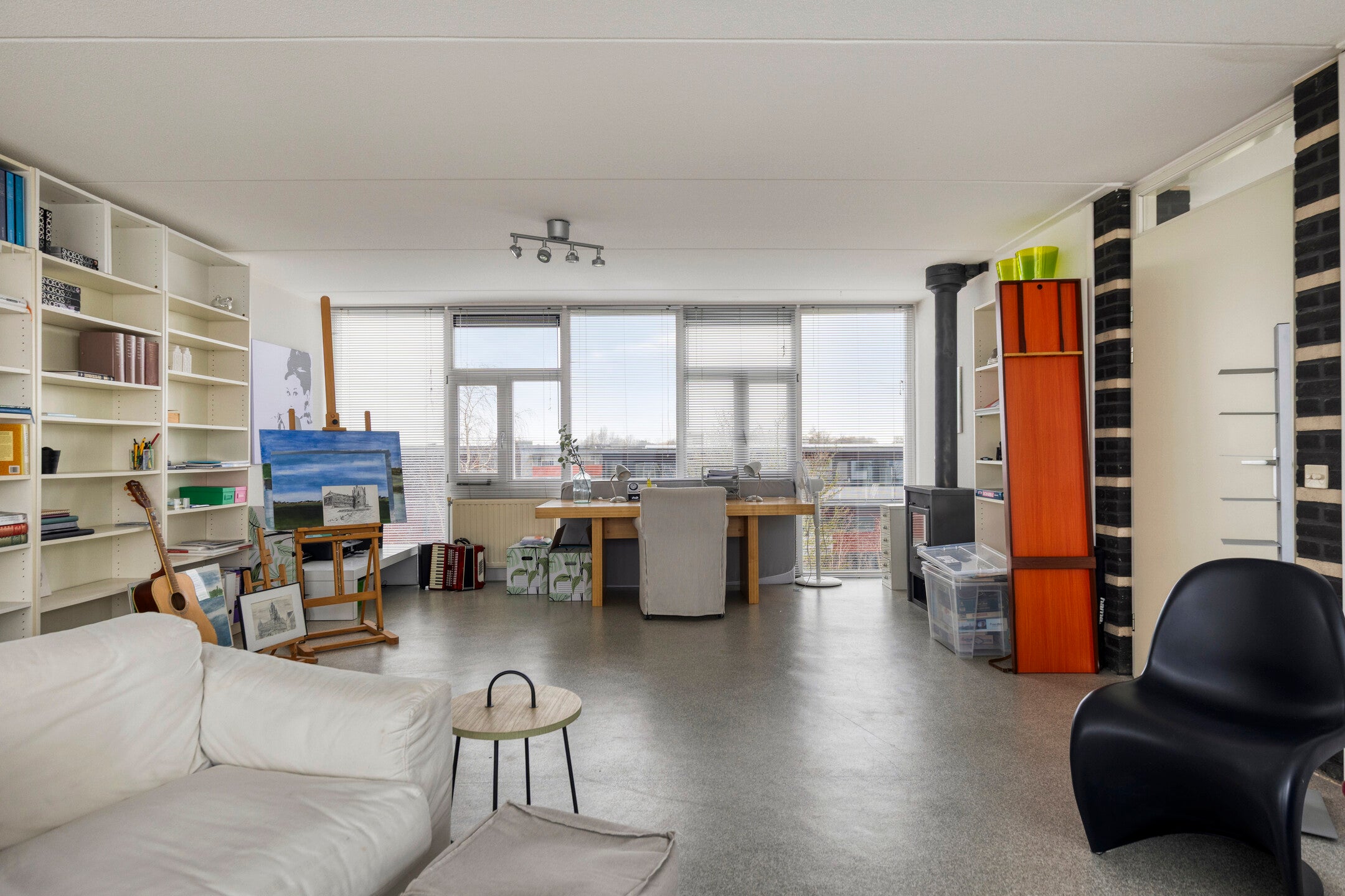 Bij binnenkomst in de hal komt u bij een multifunctionele tuinkamer, ideaal voor werk of logies. Op de eerste verdieping bevindt zich een lichte woonkamer met balkon en een open keuken. De tweede verdieping heeft twee slaapkamers en een complete badkamer. De derde verdieping beschikt over een royale open ruimte van circa 40 m², perfect te splitsen in extra slaapkamers.