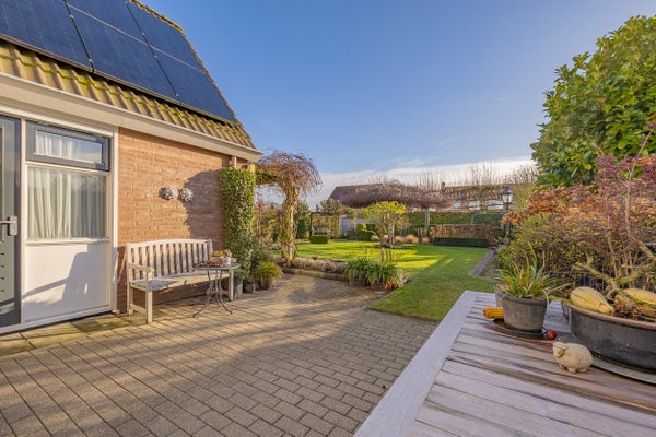 Deze vrijstaande woning, gebouwd in 1989, ligt op een perceel van 615 m² in het rustige Sint Laurens, dichtbij de voorzieningen van Middelburg. De woning heeft een tuin van circa 28 meter diep en 14 meter breed, prachtig aangelegd met terrassen, gazon en een moestuin. Binnenin vindt u op de begane grond een ruime hal, een lichte woonkamer van 45 m² met houtkachel en een moderne keuken uit 2009. De bijkeuken heeft aansluitingen voor wasmachine en droger en biedt toegang tot de inpandige garage. Op de eerste verdieping zijn drie ruime slaapkamers en een complete badkamer met ligbad en douche. Daarnaast beschikt de woning over zonnepanelen, vloerverwarming en elektrische rolluiken. Met veel privacy en een centrale ligging is deze woning ideaal voor rustzoekers.