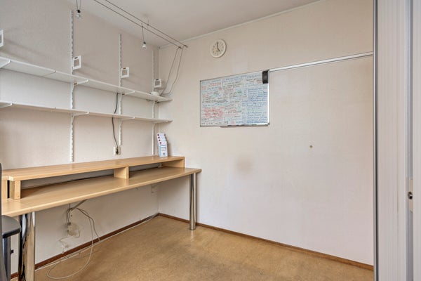Op de eerste verdieping zijn drie slaapkamers van 13, 10 en 8 m². De badkamer heeft een ligbad, wastafel en een tweede toilet. De tweede verdieping is een open zolder voor extra leefruimte.