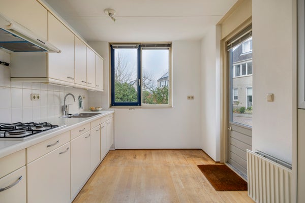 Dit huis met energielabel C, bevindt zich in de populaire Erasmuswijk. Bij binnenkomst proef je een gevoel van ruimte en licht. De indeling is praktisch: de hal biedt toegang tot de meterkast, het toilet en de trap naar de woonverdieping. De woonkamer van 40 m² heeft verschillende hoeken en een grote schuifpui die uitzicht biedt op de achtertuin. De open keuken, uitgerust met een gaskookplaat, vormt een praktische basis.