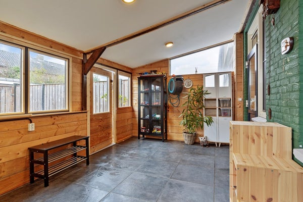 Aan de achterzijde is een aanbouw gerealiseerd met een praktische en ruime serre; een heerlijke plek om het hele jaar door te genieten. De serre staat in directe verbinding met de tuin.