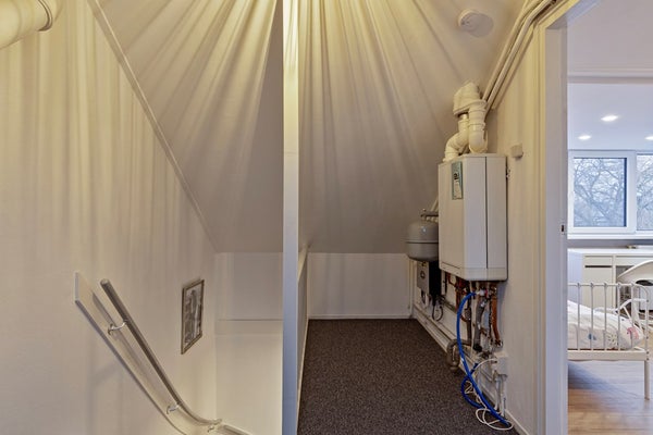 De tweede verdieping beschikt over een overloop met cv-opstelling (Intergas, 2015) en een ruime slaapkamer met dakkapel (2025), wat zorgt voor extra licht en ruimte. Daarnaast is er vaste bergruimte aanwezig.