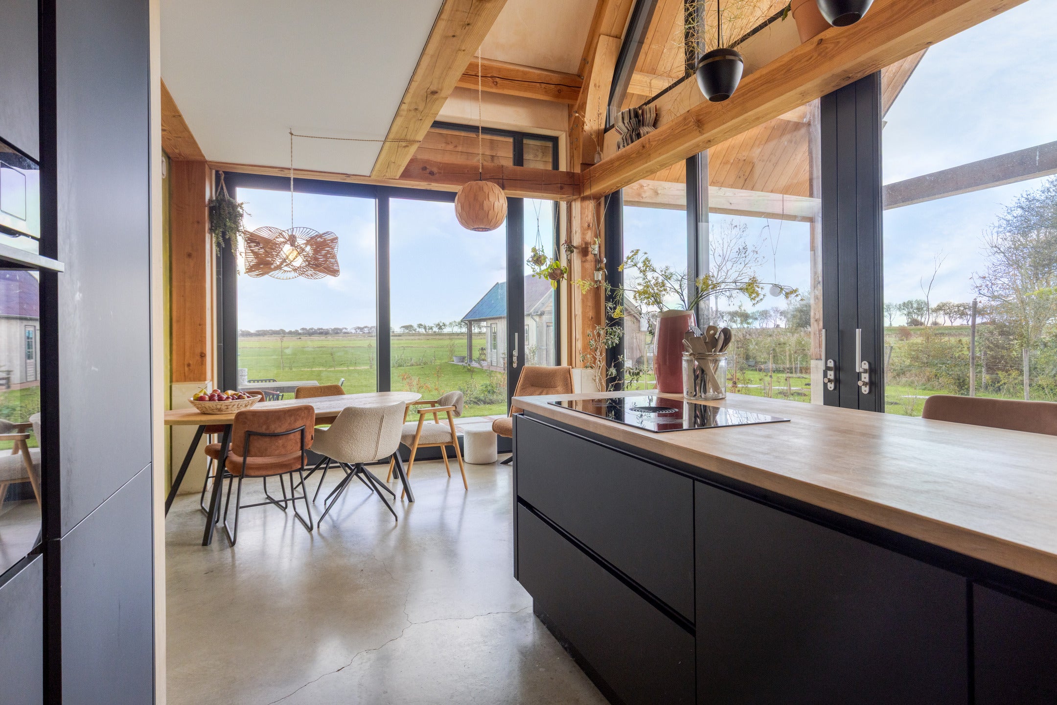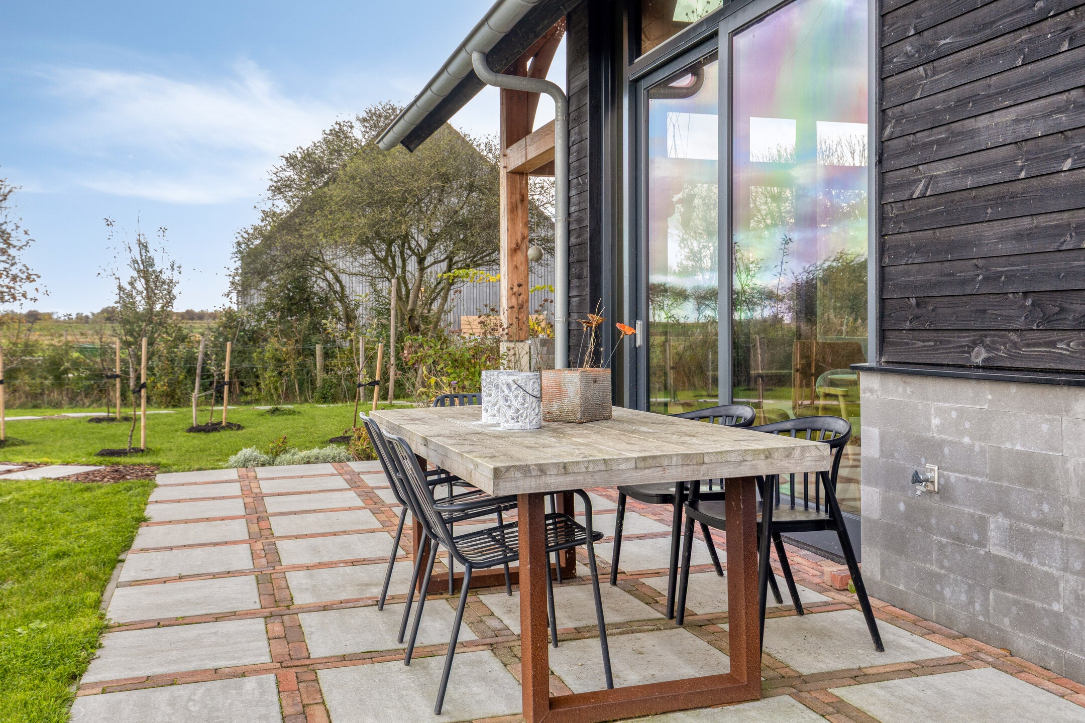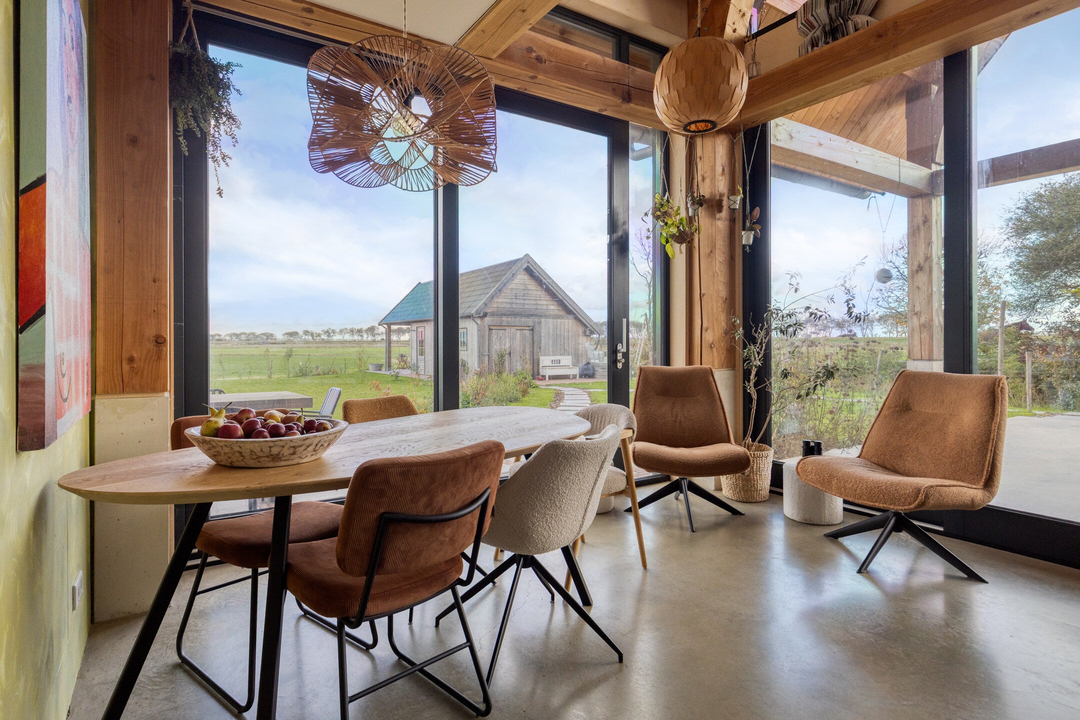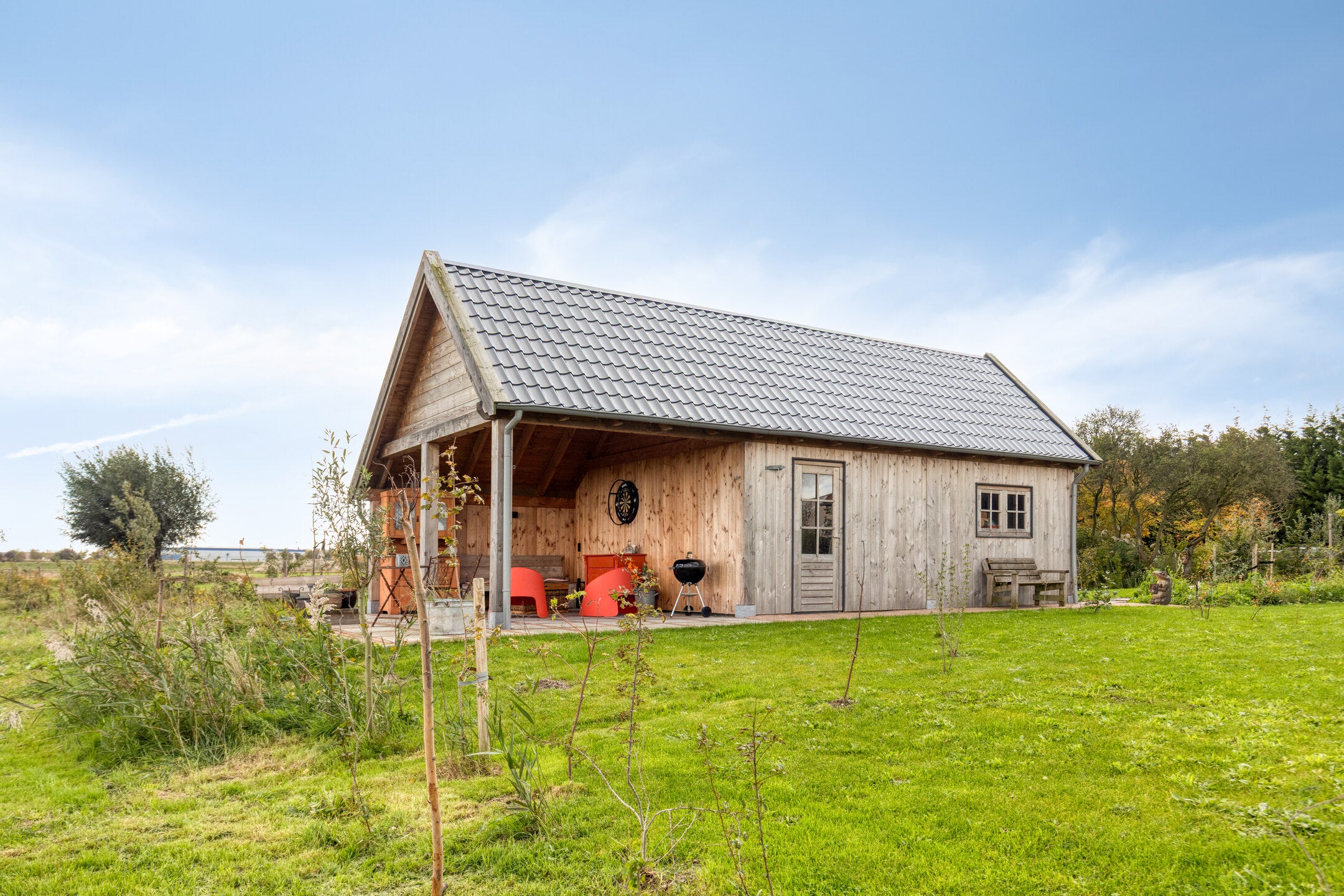 Deze unieke schuurwoning aan de Oude Veerseweg combineert rust, ruimte en design, omgeven door het groen. Met een woonoppervlak van 153 m² en een perceel van 1630 m², ervaart u privacy en een prachtig uitzicht. De lichte hal geeft toegang tot een ruime woonkamer met glas-in-lood, een luxe woonkeuken en openslaande deuren naar het terras. De moderne keuken beschikt over hoogwaardige inbouwapparatuur.
