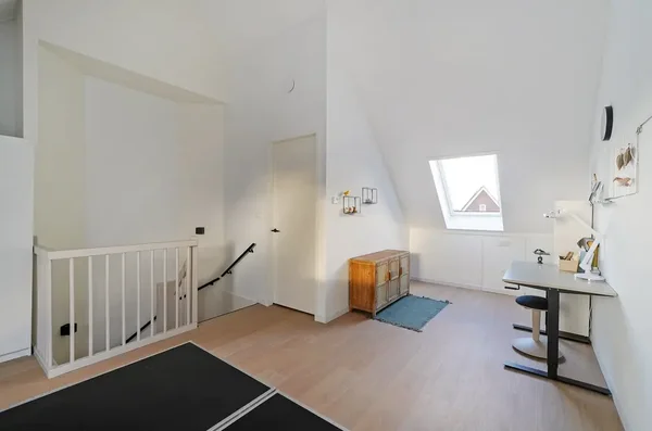 Op de eerste verdieping bevinden zich drie slaapkamers en een luxe badkamer met inloopdouche. De tweede verdieping, nu in gebruik als hobbyruimte, kan eenvoudig worden omgebouwd tot een extra slaapkamer. De goed onderhouden achtertuin op het noordwesten biedt volop zon en beschikt over een houten berging. Met energielabel A++++ is deze woning ook nog eens energiezuinig.