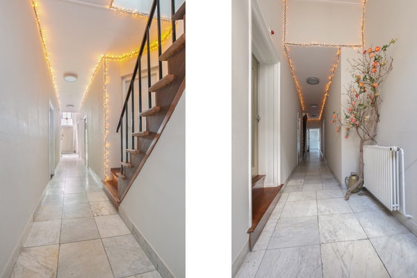 - De tussenwoning heeft een woonoppervlakte van 486 m² en beschikt over 10 kamers, waarvan 5 slaapkamers;