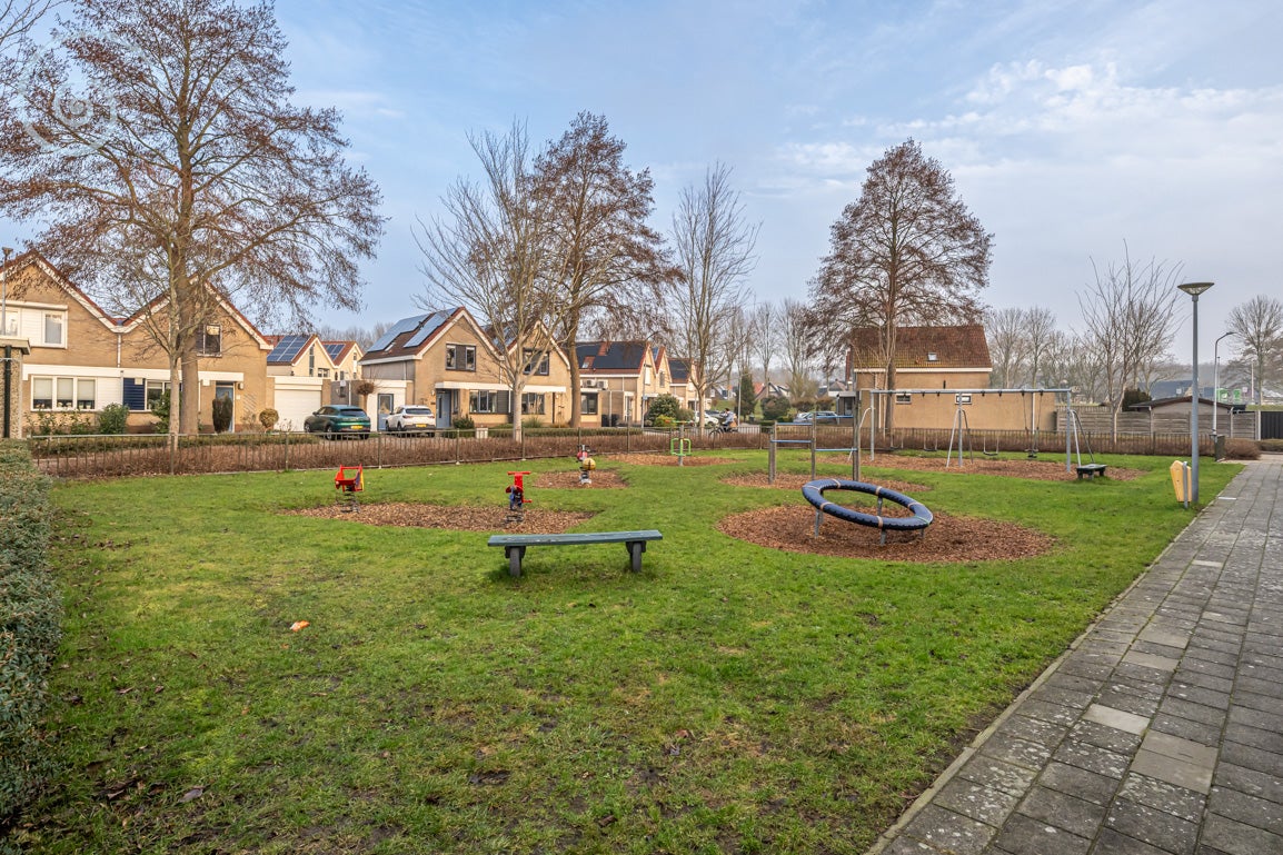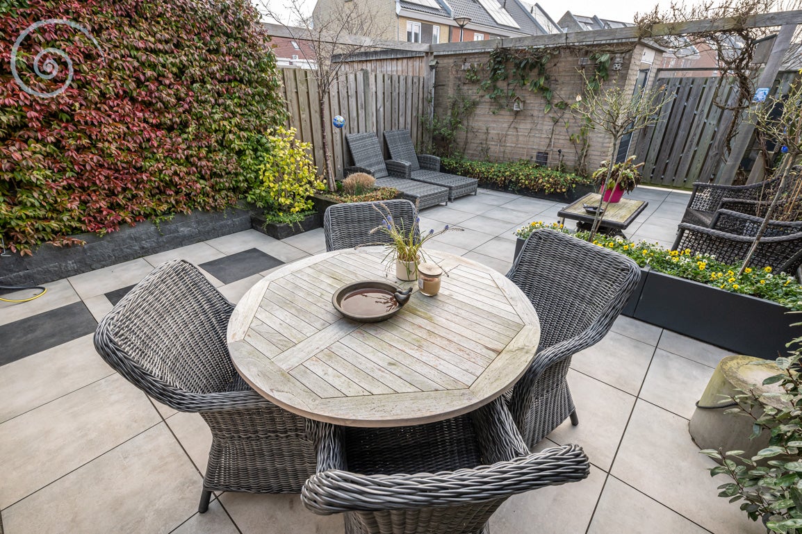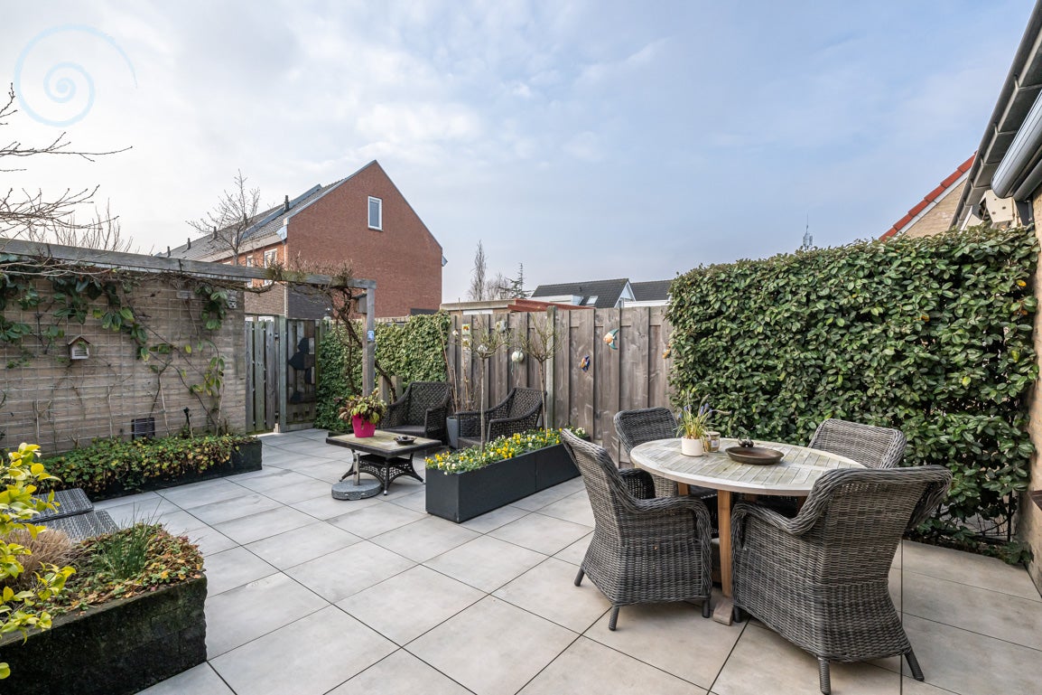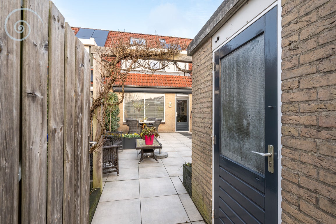 Achter het huis ligt een zonnige tuin, perfect voor ontspanning of gezellige avonden met vrienden. Een vrijstaande stenen berging biedt extra opslag voor fietsen en tuinspullen. De woning is voorzien van zes zonnepanelen en heeft energielabel B, wat zorgt voor lage maandlasten.