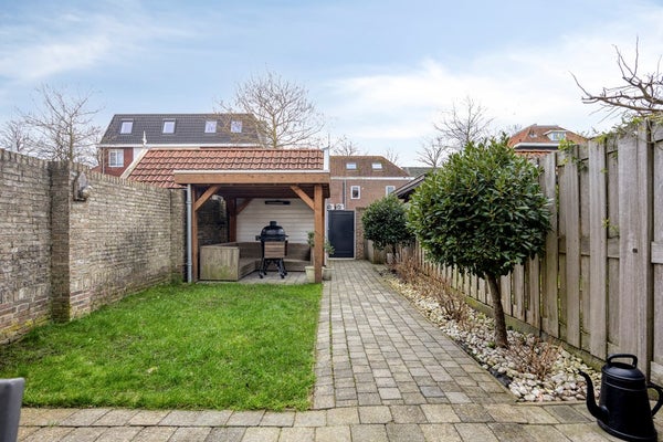 De achtertuin is gunstig gelegen op het zuiden en biedt volop zon en privacy. De overkapping vormt een heerlijke loungeplek waar je beschut kunt zitten, van het vroege voorjaar tot ver in het najaar. Achterin de tuin staat een vrijstaande berging met elektra en er is een praktische achterom of in de meeste gevallen de hoofdingang.