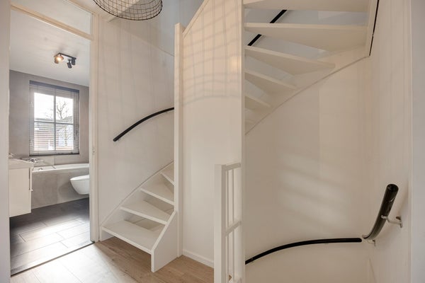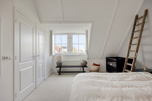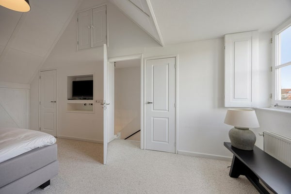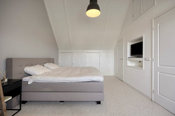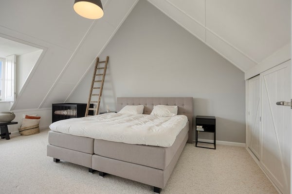 De tweede verdieping biedt een ruime vierde slaapkamer en extra bergruimte achter de knieschotten en op de vliering. Ook zijn hier de technische installaties geplaatst, waaronder de cv-ketel uit 2024 en het witgoed.