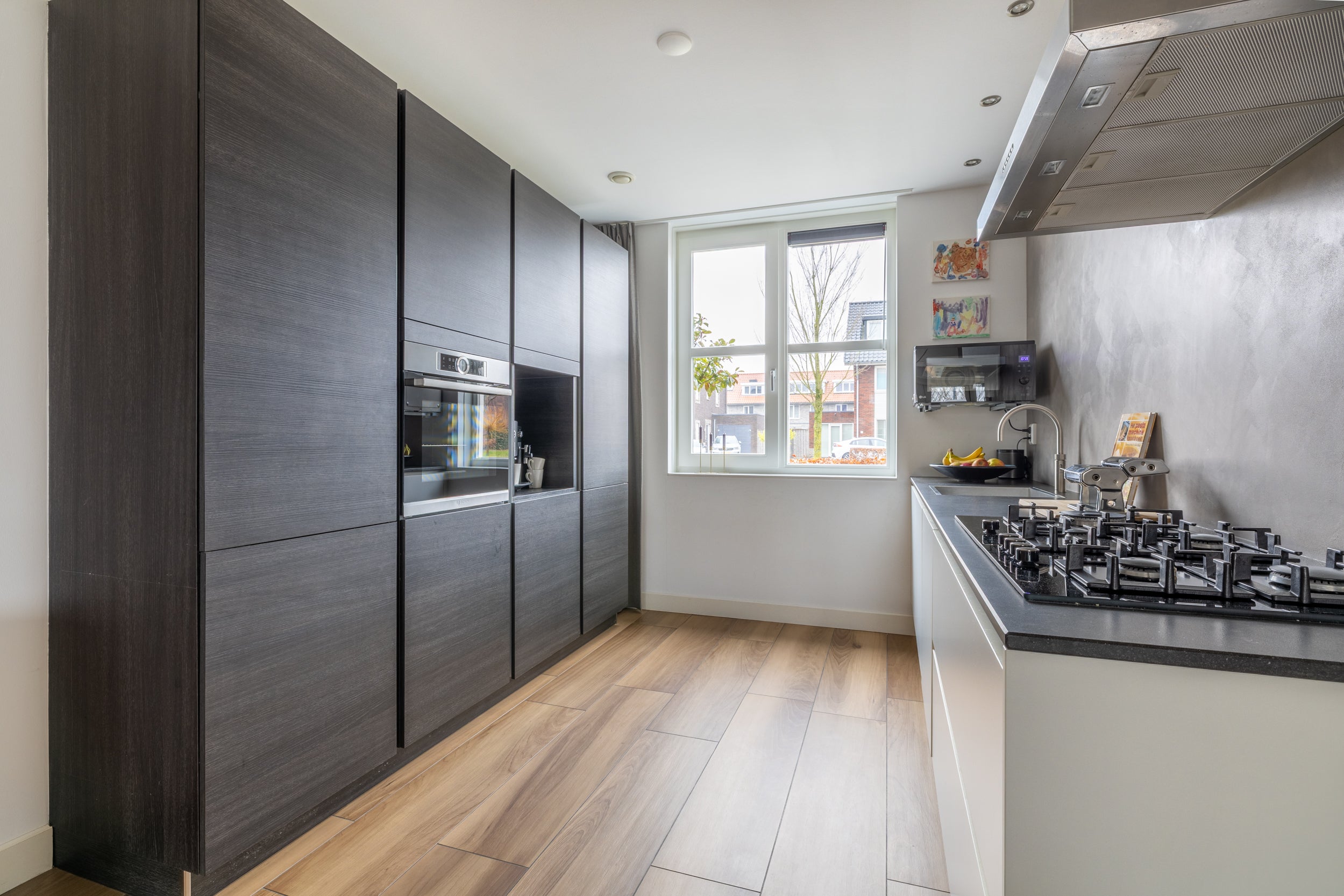 Deze woning biedt alles wat je zoekt. Bij binnenkomst voel je direct de zorg waarmee hier gewoond is. De hal leidt naar een moderne, in 2024 gerenoveerde toiletruimte. De ruime en lichte uitgebouwde woonkamer met vloerverwarming (2016) zorgt voor comfort, terwijl de strak gestuukte wanden en plafonds in 2021 een frisse uitstraling geven. De keuken (2016) is praktisch ingericht met moderne apparatuur en perfect voor zowel snelle maaltijden als uitgebreide diners.