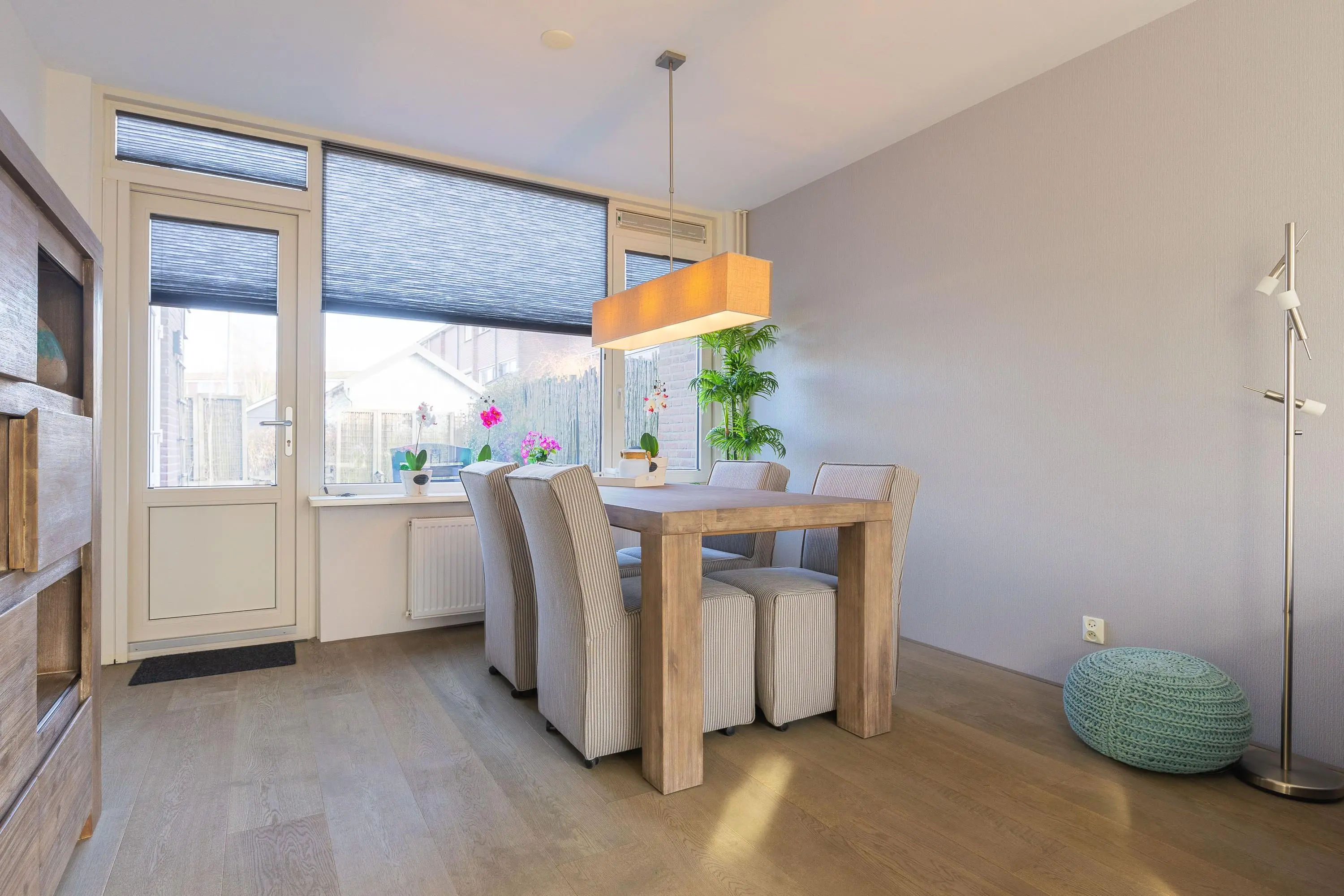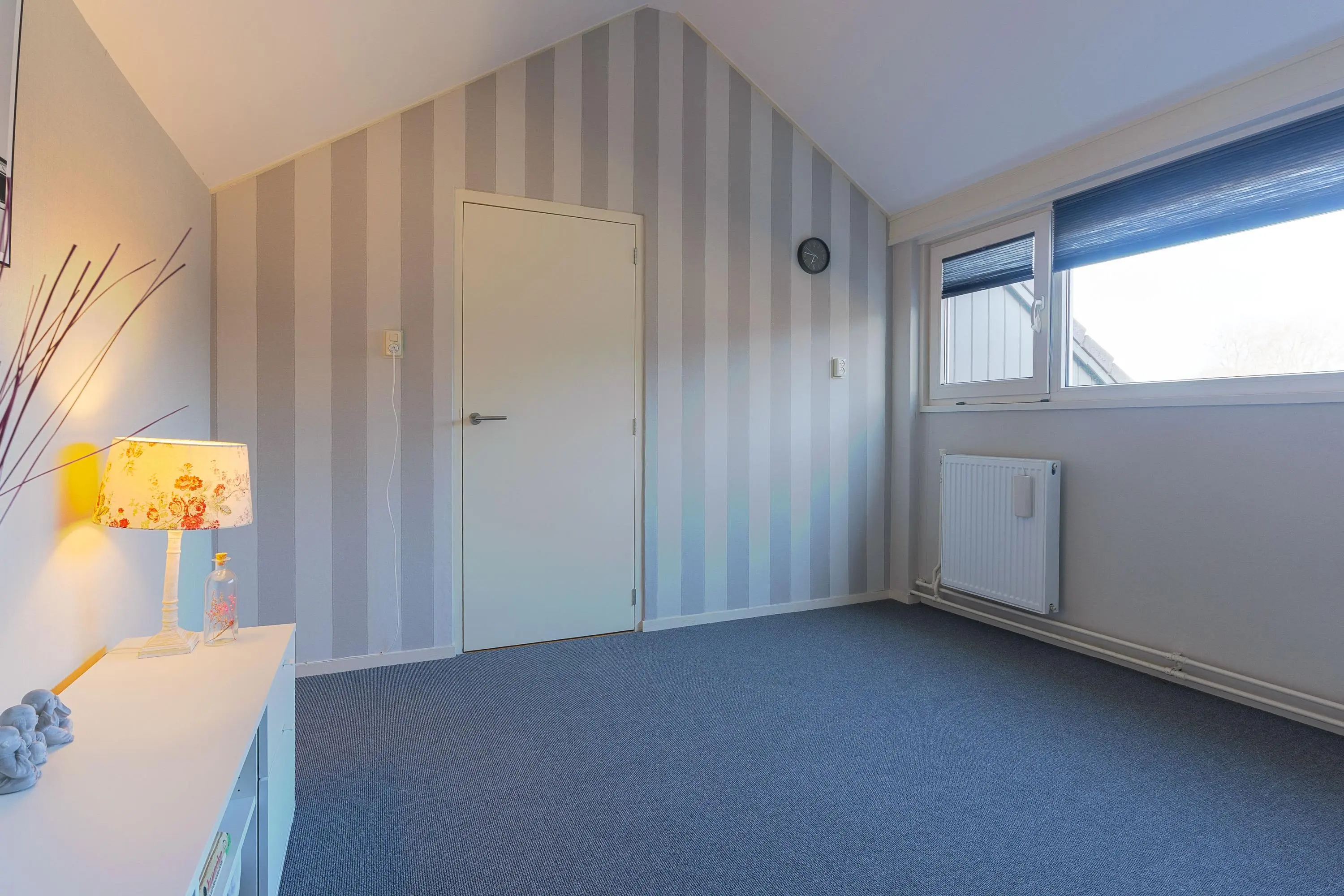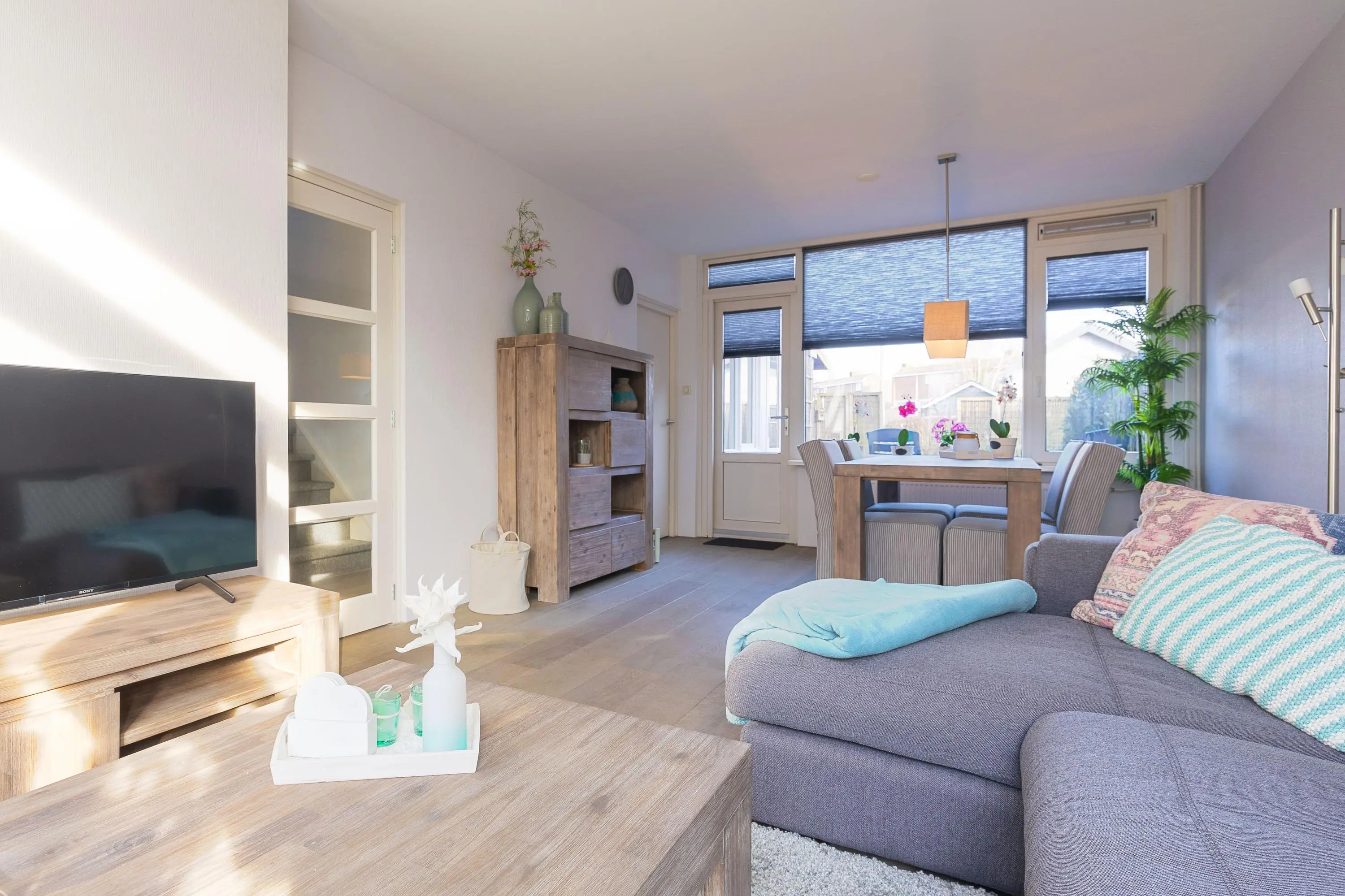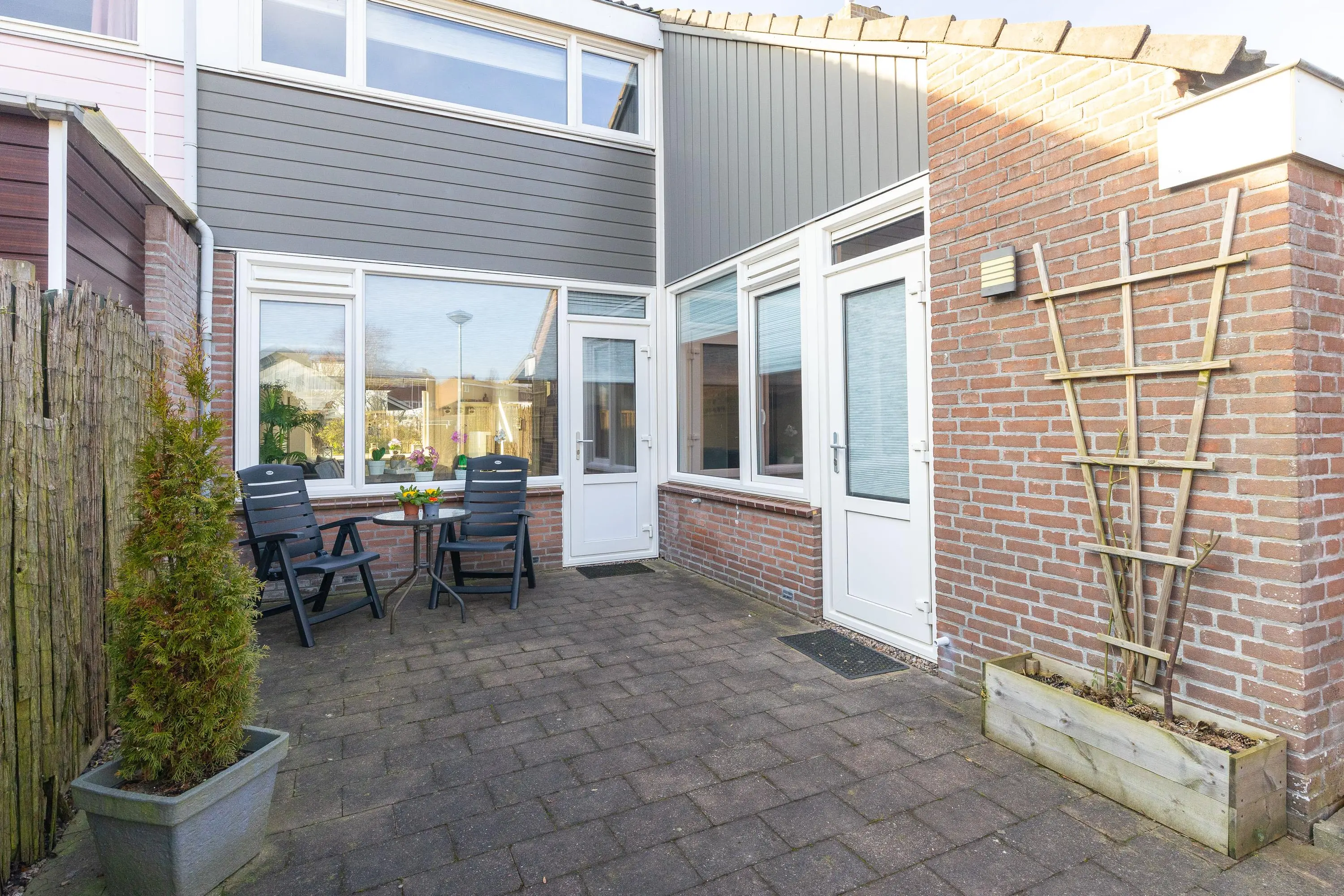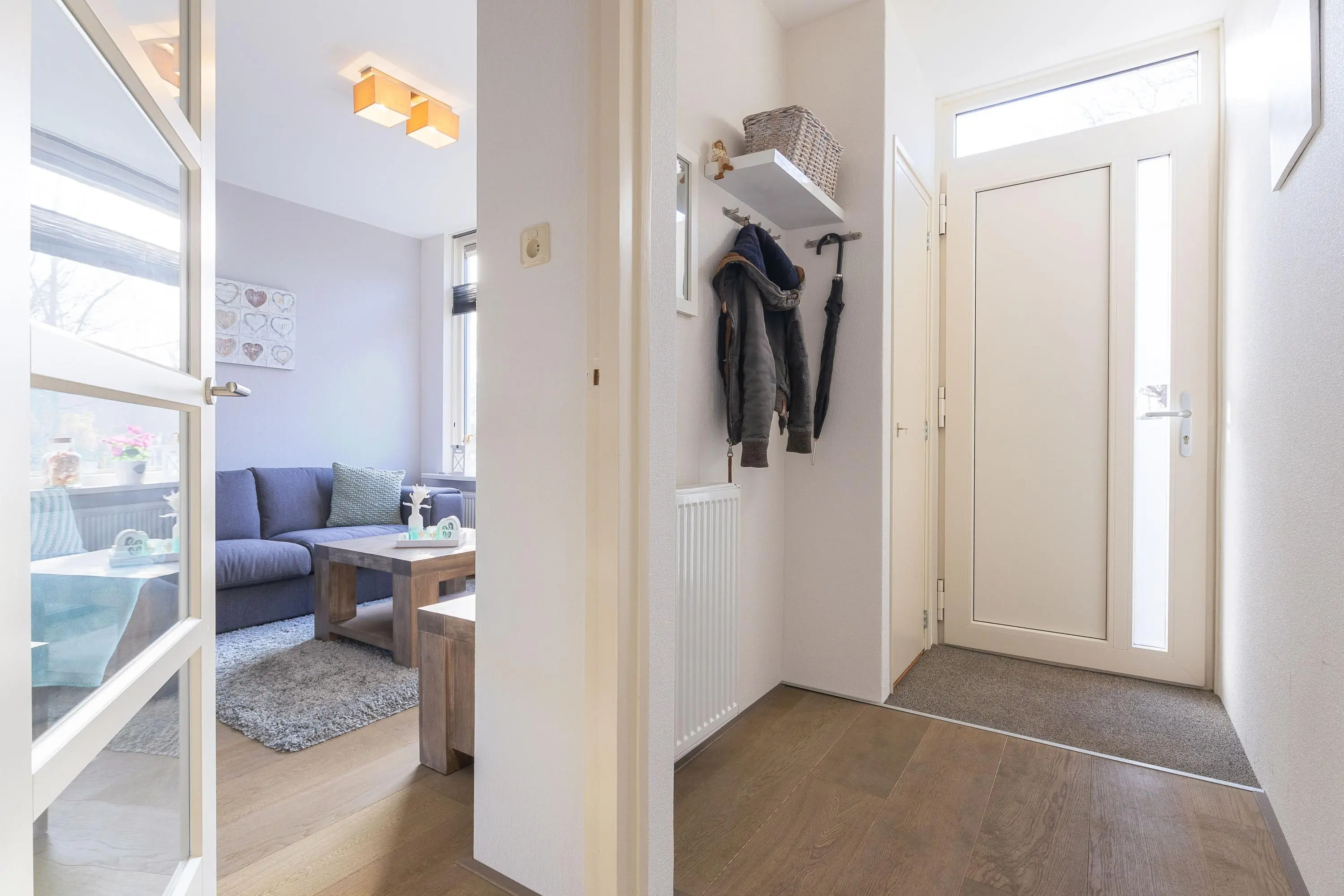 Pieter Wariuslaan 68 in Midwoud is een instapklare tussenwoning uit 1972, gelegen in een rustige omgeving. De lichte woonkamer biedt vrij uitzicht op een waterpartij en de aparte keuken is volledig uitgerust met moderne inbouwapparatuur waaronder een vaatwasser en 5-pits gaskookplaat. Op de begane grond vind je ook een badkamer met een designradiator en douchehoek, evenals een extra slaapkamer die ook als werkkamer kan dienen. Boven zijn er twee royale kamers en een handige overloop. De woning heeft een aangebouwde berging met aansluitingen voor wasmachine en droger, en de achtertuin van 8x7 meter beschikt over een tuinhuis met elektra. Het onderhoud is laagdrempelig door kunststof kozijnen en keralit gevelbekleding. Energielabel C. Woonoppervlak is 84 m², op een perceel van 142 m².