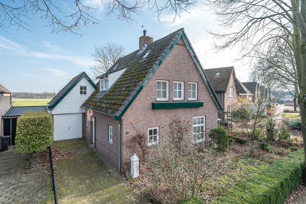 Op zeer rustige locatie aan de rand van het dorp gelegen, grotendeels in originele staat verkerend VRIJSTAAND LANDHUIS met royale living, aparte tuinkamer/serre, 4 ruime slaapkamers, ruime zolder, inpandige GARAGE, bijkeuken, ca 23m diepe zonnige achtertuin met overdekt terras en uniek vrij uitzicht over landerijen en beschermd natuurgebied.