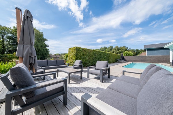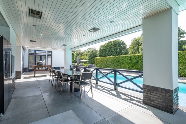 Ontdek deze uitzonderlijke vrijstaande villa aan Hofland, gerealiseerd in 2007. Gelegen in het hart van Mijdrecht, dichtbij dagelijkse voorzieningen, geniet je optimaal van de levendige sfeer. De villa heeft een royale woonoppervlakte van 541 m², met 9 kamers, 7 slaapkamers en 6 badkamers. De villa is duurzaam met energielabel A+++ en biedt een ingangen voor een dubbele garage. De living is licht en ruim door hoge plafonds en een sfeervolle erker, met een woonkeuken van Eggersman en hoogwaardige apparatuur. De master bedroom heeft een en-suite walk-in closet en 2 badkamers. Buiten vind je een fraai aangelegde tuin met een verwarmd zwembad en een prachtig uitzicht op het omliggende groen. Deze villa biedt de ideale combinatie van luxe en comfort.