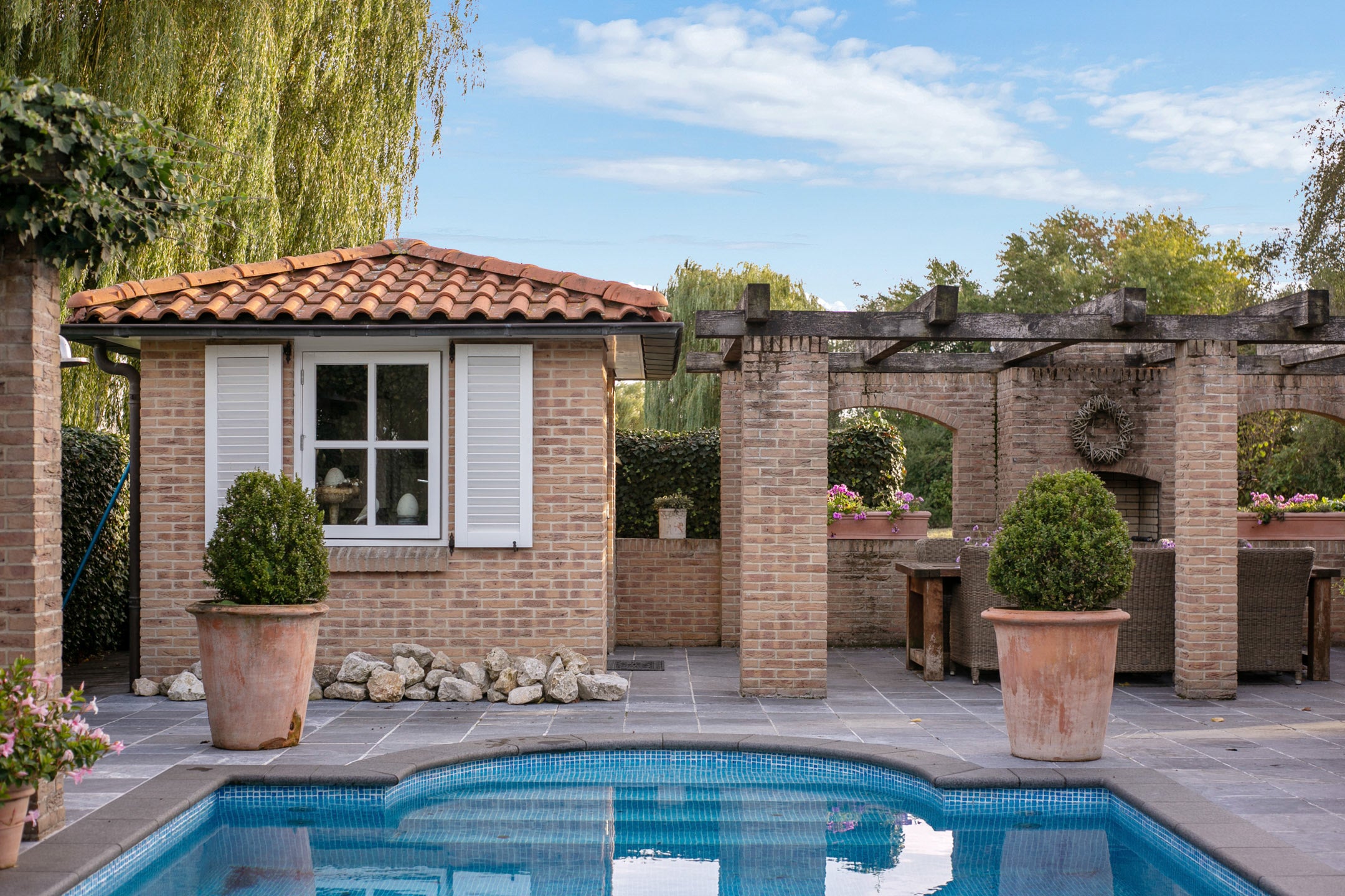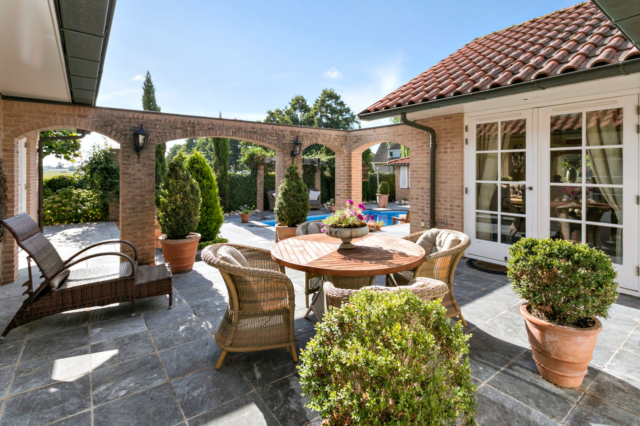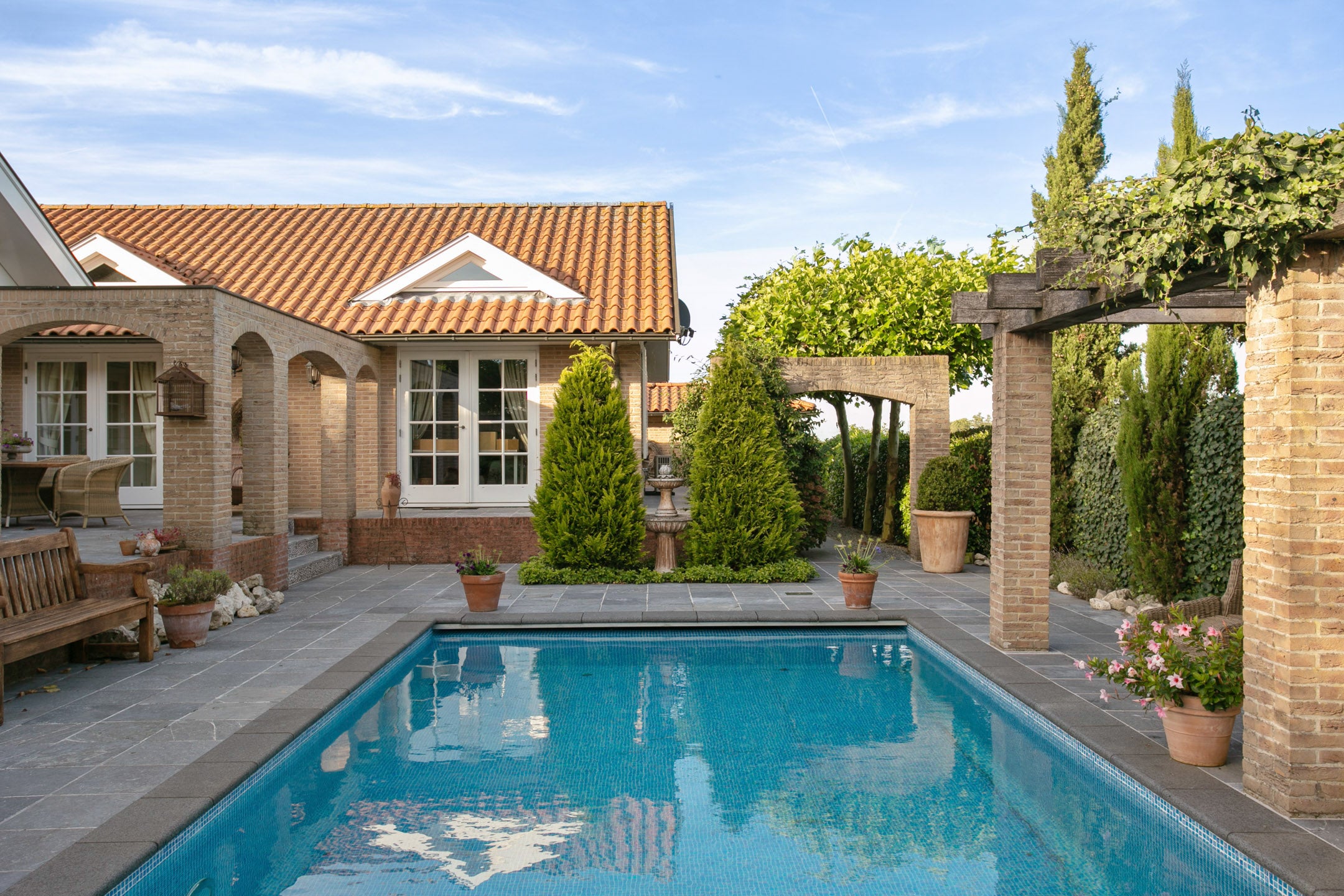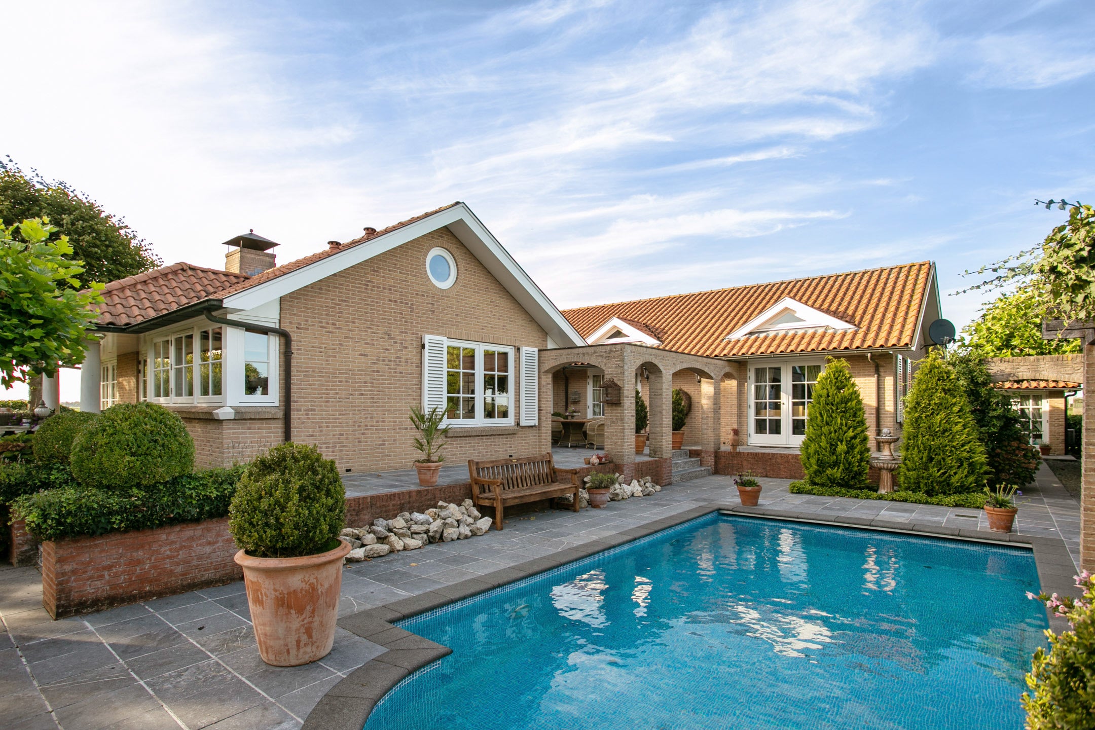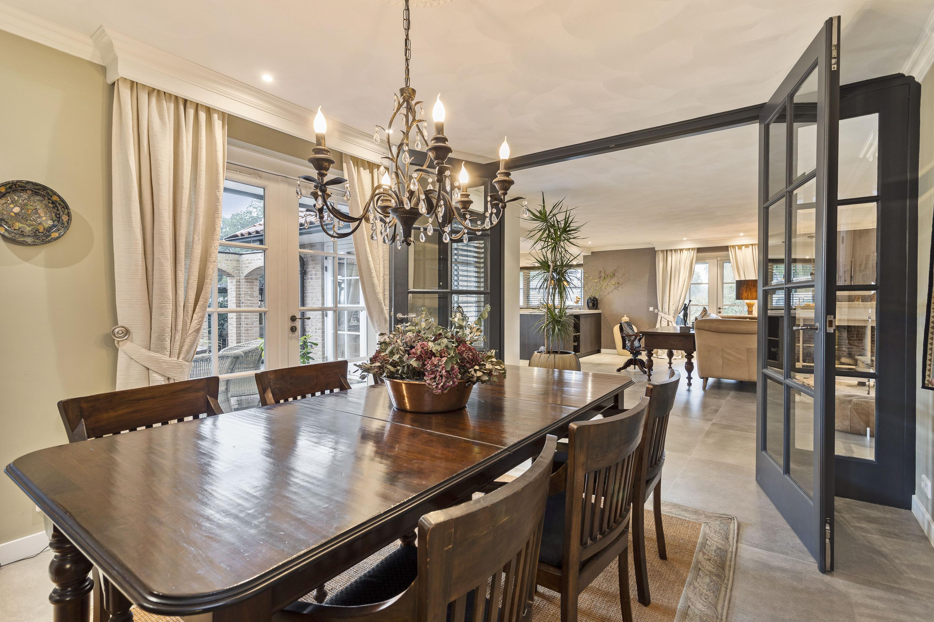 Deze landelijke villa biedt luxe en comfort op een royale kavel van 1310 m² met verwarmd zwembad. De villa heeft een woonoppervlakte van 230 m² en beschikt over 8 kamers, waaronder 6 slaapkamers en 4 badkamers, waarvan 3 met eigen badkamer. U vindt hier ook een apart gastenverblijf/studio. De U-vormige opbouw creëert een gezellig binnenhof dat perfect in verbinding staat met de buitenruimtes, waaronder een mooie tuin met diverse terrassen en een veranda. Binnen zijn grote ramen aanwezig die zorgen voor veel lichtinval en een sfeervolle woonkamer met gashaard. De moderne keuken is uitgebreid met luxe apparatuur en biedt zicht op de tuin. Op slechts 25 minuten van Amsterdam en met uitstekende voorzieningen in de nabijheid, is dit een geweldige plek om te wonen.