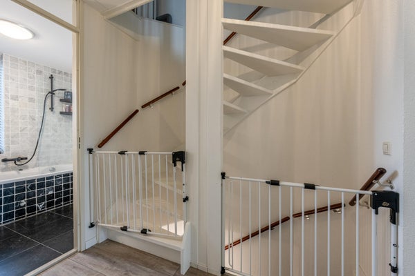 Vanaf de overloop zijn de drie slaapkamers, de badkamer en de trap naar de tweede verdieping bereikbaar.