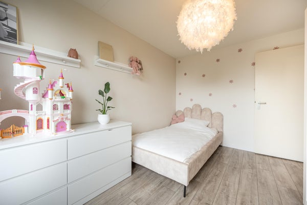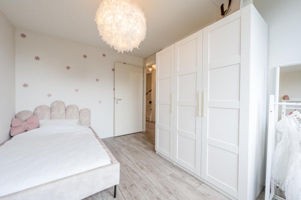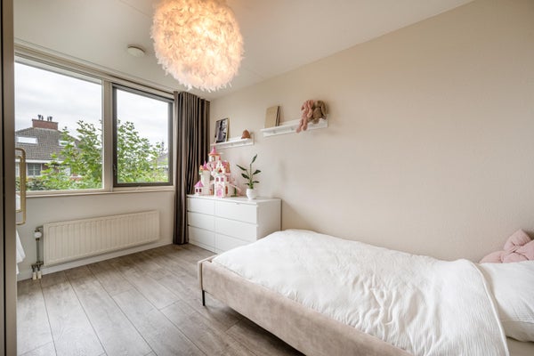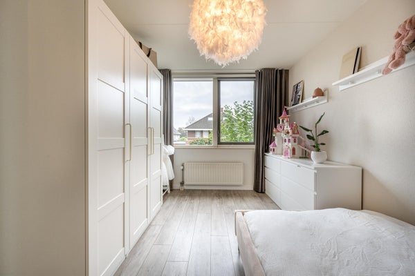 Alle slaapkamers zijn ruim van opzet en afgewerkt met mooi eiken laminaatvloer. Daarnaast bevindt zich op de overloop een handige vaste kast.