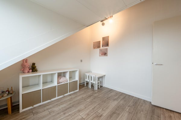 De tweede verdieping beschikt over twee ruime kamers, beide voorzien van grote dakkapellen, wat zorgt voor veel lichtinval. De verdieping is wederom afgewerkt met een eikenlook laminaatvloer. De vloeren op de eerste en tweede verdieping zijn, net zoals de begane grond, in 2021 gelegd.