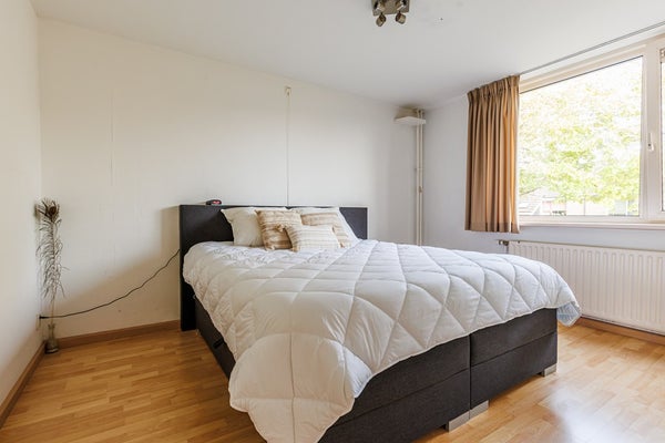 De achtertuin op het westen is verzorgd aangelegd en beschikt over een overkapping, stenen berging en achterom. Dankzij de ligging op het westen geniet je hier van de middag- en avondzon — ideaal voor lange zomeravonden. Aan de voorzijde van de woning ligt een groen speelveld, waar kinderen veilig kunnen spelen en waar je vrij uitzicht hebt.