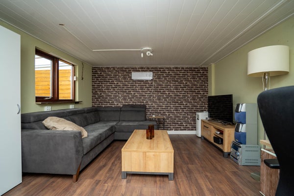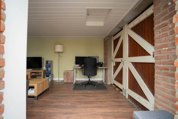 Een groot pluspunt is het royale bijgebouw. Het voorste gedeelte wordt gebruikt als garage en het achterste gedeelte is ingericht als een leefruimte. Hierdoor is het de ideale plek voor een thuiswerkplek, hobbyruimte, mancave of een chillplek voor de kinderen. Dit maakt de woning extra veelzijdig.