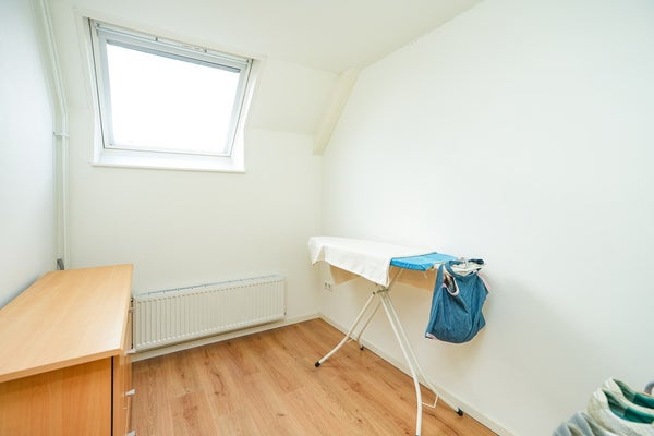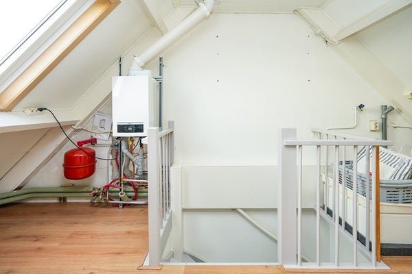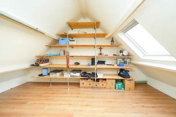 Via de vaste trap bereiken we de zolderverdieping, die dankzij een royaal Velux-raam lekker licht is. Op de zolder bevinden zich de aansluitingen voor de CV-ketel (2024) en de witgoedapparatuur. Momenteel wordt de ruimte gebruikt als bergruimte, maar hier zijn volop mogelijkheden: je kunt er eenvoudig een vierde slaapkamer of een hobby-/werkkamer creëren. Met de plaatsing van een dakkapel kan de zolder zelfs aanzienlijk worden vergroot, waardoor deze verdieping optimaal kan worden benut. Ook de zolderverdieping is voorzien van een nette laminaatvloer.