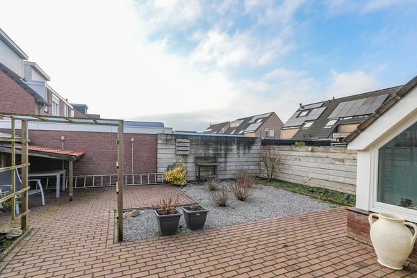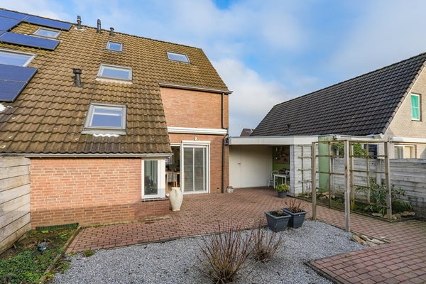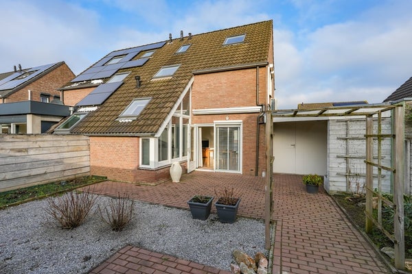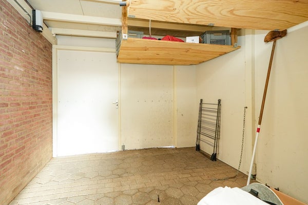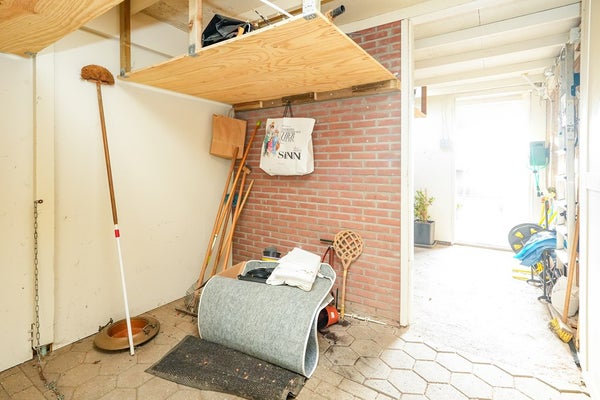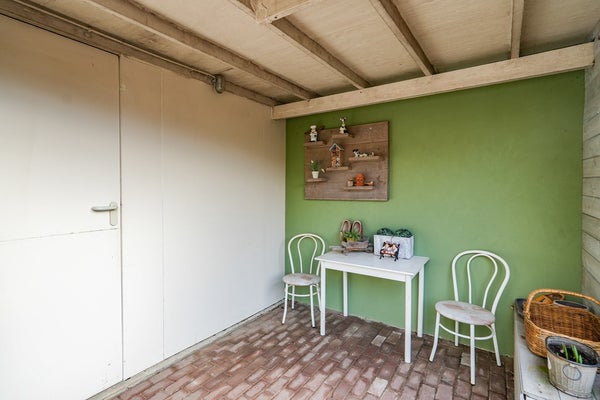 De aangrenzende berging, voorheen een carport, is momenteel opgedeeld in twee separate ruimten en bereikbaar vanuit zowel de oprit als de achtertuin. Hierdoor is de tuin praktisch en veelzijdig in gebruik. Aan de zijde van de achtertuin beschikt de berging bovendien over een functionele overkapping, ideaal voor het creëren van een comfortabele zit- of loungehoek.