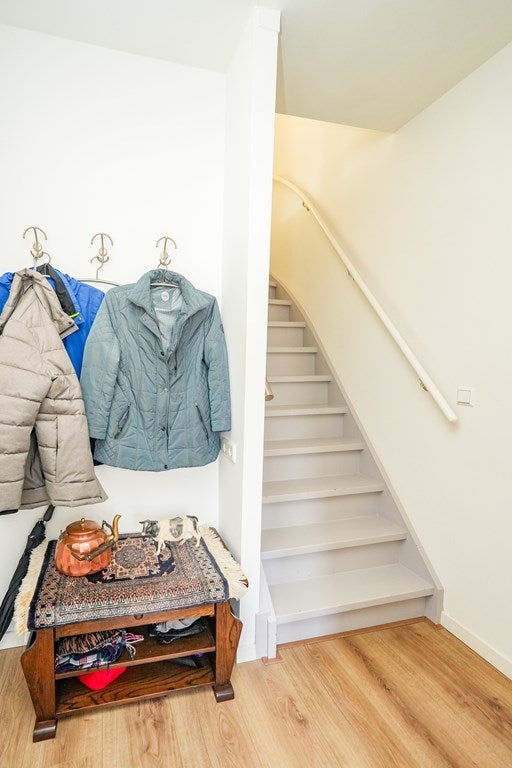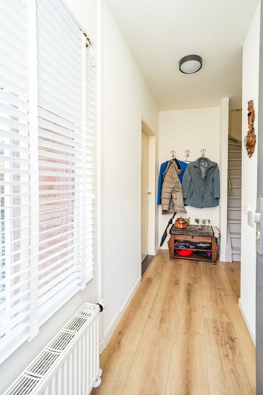 Via de verzorgde entree kom Je binnen in de hal. Aan de rechterzijde bevindt zich een modern toilet met fontein. Recht vooruit vind je de trap naar de eerste verdieping en de meterkast is net om de hoek gesitueerd. Aan de linkerzijde geeft een deur toegang tot de woonkamer, die aan de voorzijde van de woning is gelegen.