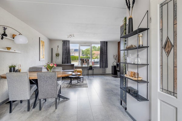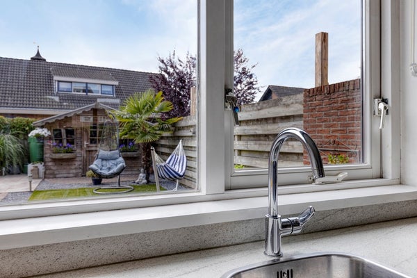 Aan de voorzijde valt al op hoe breed het kavel is. Veel ruimte voor eigen auto's aan de voorzijde en door de garage en schuur veel ruimte voor klussers/hobbyisten. Binnen kom je terecht in een lichte woonruimte (doorzonkamer), waar je verschillende kanten mee op kunt. Of je nu houdt van een knusse zithoek, een grote eettafel of een speelplek voor de kids: in deze woonkamer kan het prima. En aan de achterzijde grenst de woning aan een ruime achtertuin. Hier geniet je van lange zomeravonden of een kop koffie in de ochtendzon. De veranda geeft fijne privacy.