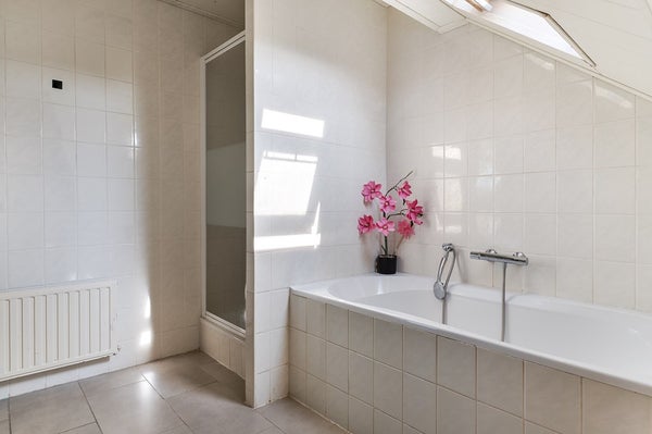 Overloop met vaste kasten en toegang tot drie ruime slaapkamers, waarvan de grootste is voorzien van airconditioning. De badkamer is compleet ingericht met ligbad, douche, wastafelmeubel en tweede toilet.