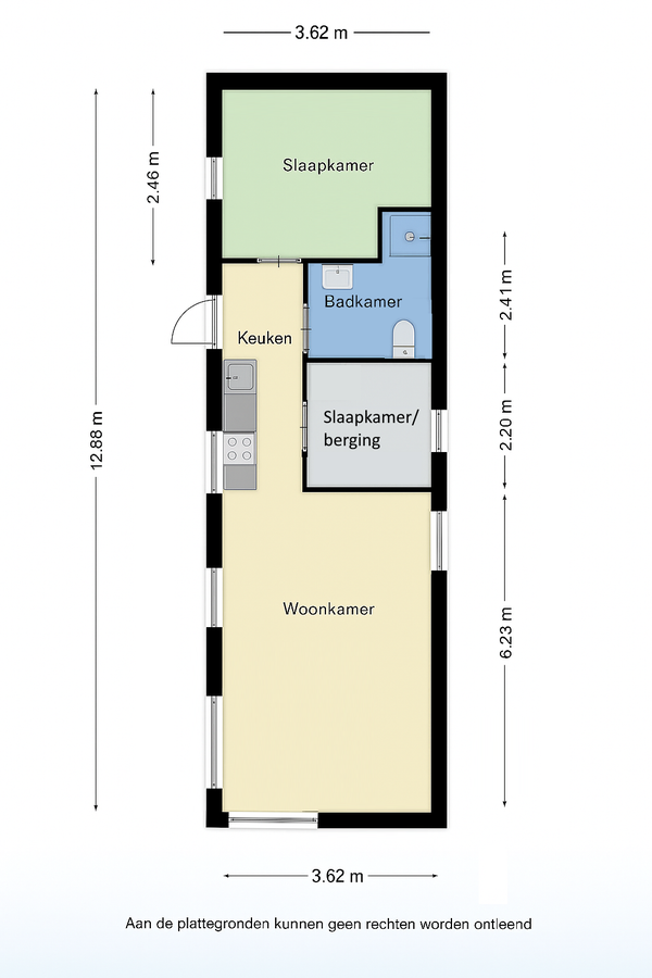 - De tussenwoning heeft een woonoppervlakte van 46 m² en beschikt over 3 kamers, waarvan 2 slaapkamers;