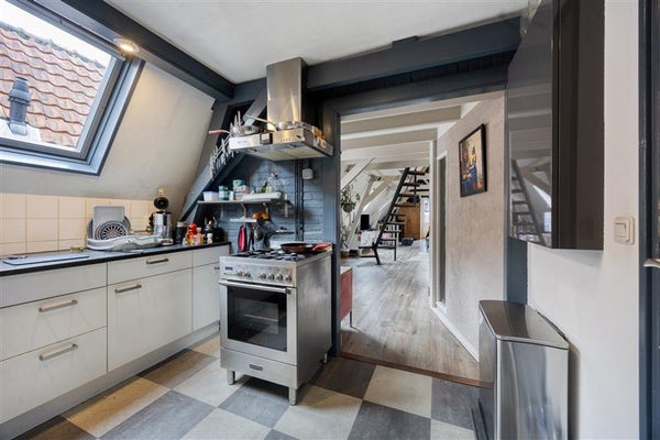 De eerste verdieping van het pand, gelegen op het adres Zuideinde 25-BV, huisvest een ruim opgezette woonruimte met een gebruiksoppervlakte van ongeveer 96 m². Het appartement, dat verkocht wordt in verhuurde staat voor onbepaalde tijd, biedt een eigen, privaat toegankelijke entree en trapopgang, wat garant staat voor zowel zelfstandigheid als rust. Binnen deze ruimtelijke setting vallen vooral de hoge plafonds op, die samen met de lichte, open indeling een gevoel van ruimte en comfort oproepen. De moderne keuken en de smaakvol ingerichte badkamer, uitgerust met een douche en een wastafelmeubel, maken het geheel af en creëren een aangename woonbeleving.
