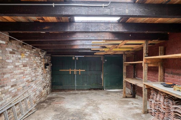 Schuin tegenover de woning bevindt zich een ruime garage/schuur van circa 26 m². Deze ruimte is geschikt voor opslag, hobby of het stallen van een voertuig. De garage wordt separaat aangeboden en is niet inbegrepen in de vraagprijs.