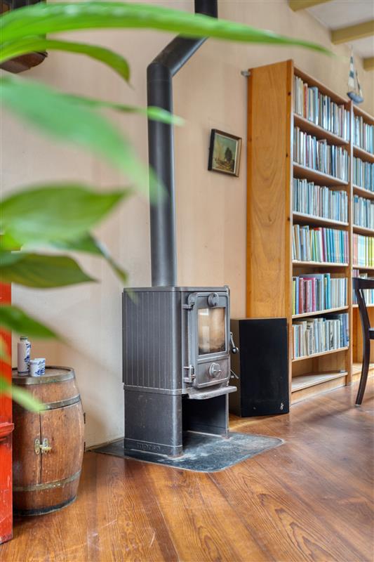 Entree met hal, toilet en fontein. Vanuit de hal is er toegang tot de open woonkamer. De woonkamer kenmerkt zich door de ruime opzet en de prettige lichtinval. Daarnaast is de woonkamer voorzien van een knusse houtkachel.