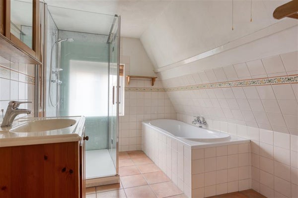 Aan de voorzijde bevindt zich een slaapkamer met kastruimte. Daarnaast ligt aan de voorzijde de ruime badkamer, voorzien van een ligbad, douche en wastafelmeubel. Op deze verdieping is tevens een separaat toilet met fontein aanwezig.