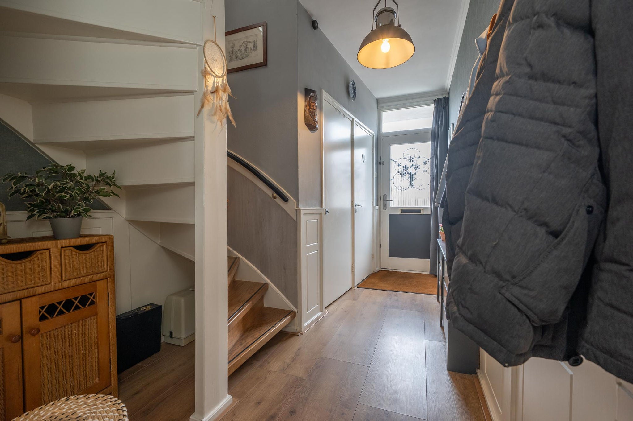 Deze uitgebouwde hoekwoning met garage is gelegen in een prettige woonomgeving, dichtbij voorzieningen zoals het centrum, openbaar vervoer en scholen. De woning is goed onderhouden met een ruime achtertuin, een zijtuin en een garage die momenteel als klusschuur wordt gebruikt. Op de begane grond vind je een hal met toilet en toegang tot een ruime open keuken en woonkamer, perfect voor een grote eettafel. De eerste verdieping herbergt twee grote slaapkamers, een inloopkast en een complete badkamer. Op de zolderverdieping is een riante slaapkamer met dakkapel en bergruimte. De woning beschikt over 5 kamers, 3 slaapkamers, een centrale verwarming en is gebouwd in 1964.