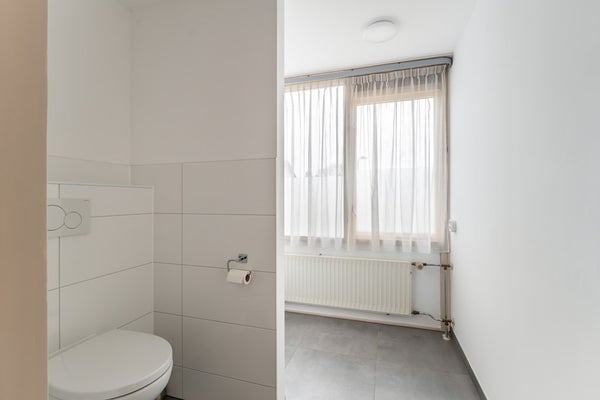 Op deze verdieping bevindt zich tevens een inpandige doucheruimte. Daarnaast is er een aparte wasruimte met aansluitingen voor de wasmachine en een wandcloset, wat zorgt voor extra comfort en een praktische indeling van de verdieping.