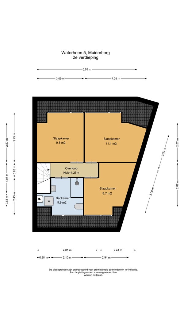 - De tussenwoning heeft een woonoppervlakte van 160 m² en beschikt over 9 kamers, waarvan 6 slaapkamers;