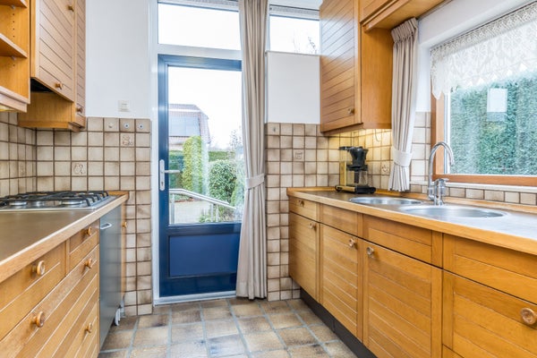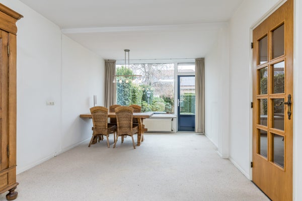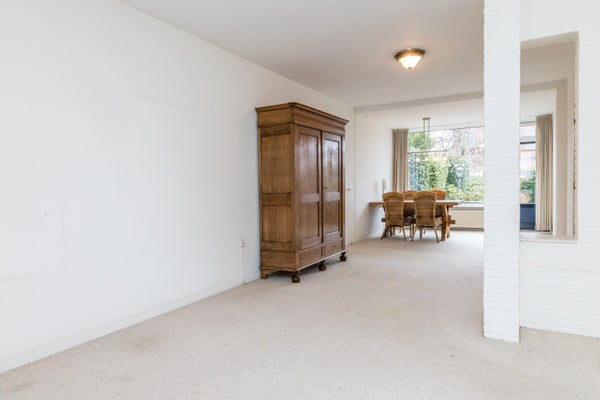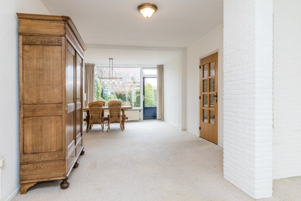 Via de eigen oprit bereikt u de entree van de woning. De hal biedt toegang tot de meterkast en het toilet en leidt u naar de verrassend ruime woonkamer. Met een oppervlakte van maar liefst ca. 44 m² is deze L-vormige living royaal van opzet en voorzien van een separate eetkamer, ideaal voor gezellige diners en lange avonden met familie en vrienden. De gesloten keuken beschikt over een functionele keukeninstallatie en biedt directe toegang tot de tuin.