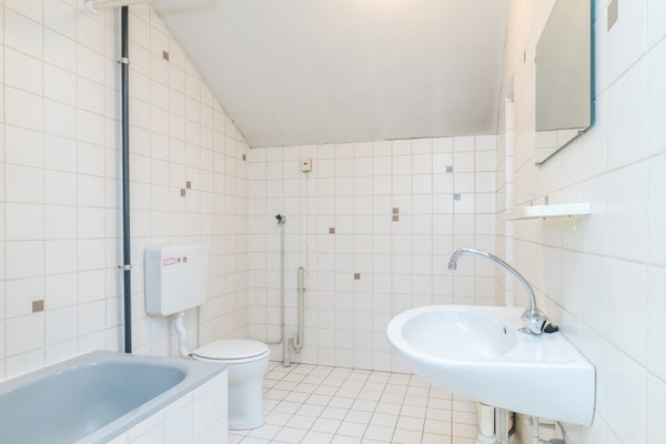 Op de eerste verdieping geeft de overloop toegang tot drie slaapkamers en de badkamer. De badkamer is compleet uitgerust met ligbad, douche, tweede toilet en wastafel – comfortabel en functioneel ingericht.
