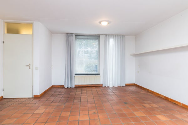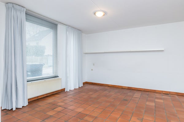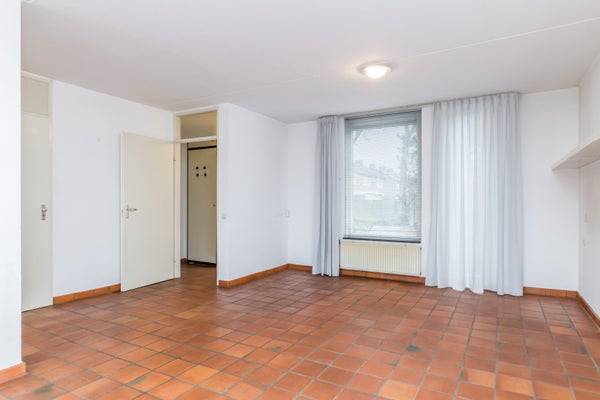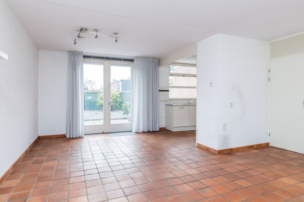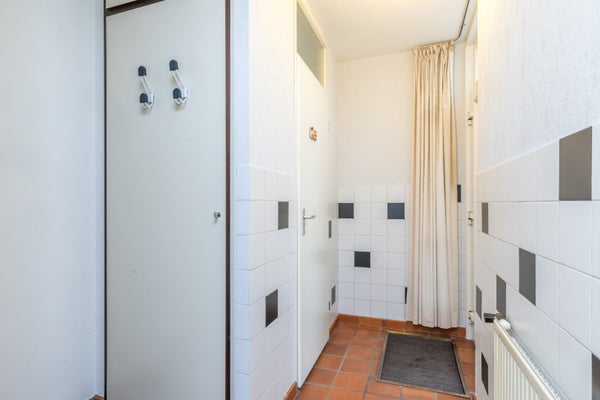 Via de fraai aangelegde voortuin bereikt u de entree. De hal met meterkast en toiletruimte vormt een verzorgde binnenkomer. Zodra u de woonkamer betreedt, ervaart u het speelse karakter van de indeling. De plavuizen vloer zorgt voor een warme en praktische basis, terwijl het royale tuincontact direct in het oog springt. Hier vloeien binnen en buiten moeiteloos in elkaar over.