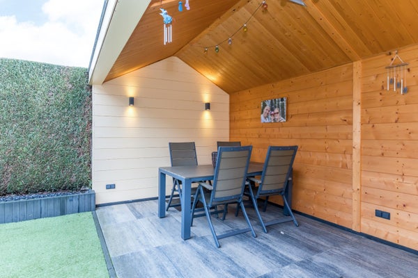 Via de tuindeuren bereik je de onderhoudsarme achtertuin, gelegen op het zuidoosten. Optimale bezonning en volop privacy. De volledig geïsoleerde veranda vormt een fantastische extra leefruimte en beschikt tevens over een praktische berging. De garage is voorzien van geïsoleerde openslaande deuren.