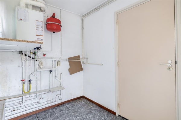 Hal, 6 m², v.v. plavuizen, CV installatie en deur naar de achtertuin.