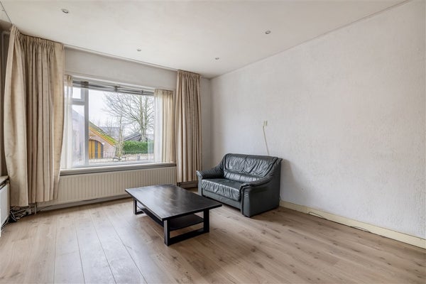 Woonkamer, 31.3 m², v.v. een laminaatvloer, openslaande deuren naar achtertuin.