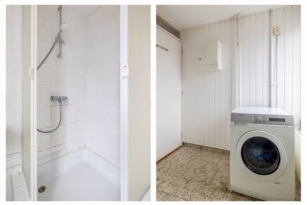 Badkamer circa 5 m² v.v. douche en wastafel en aansluitingen voor wasmachine.