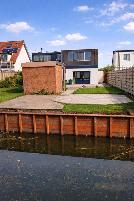 - De achtertuin is ca. 22,4 m diep (incl. een stukje sloot) en ca. 7,1 breed;