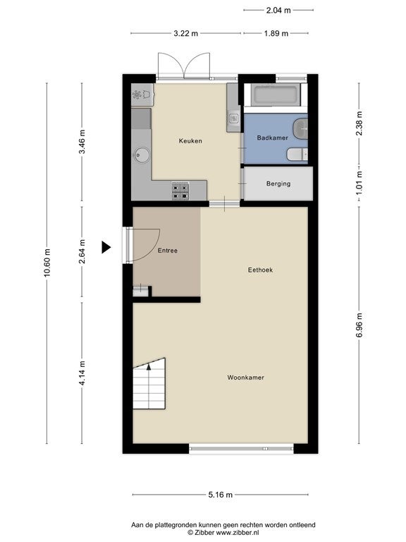 De entree van de woning is bereikbaar via de zijkant van de woning. Hal met meterkast (5 groepen en a.l.s.), woonkamer met trapopgang naar de 1e etage. De eenvoudige keuken is voorzien van een gaskookplaat, afzuigkap, gootsteen en opstelplaats voor de wasmachine. De openslaande deuren in de keuken geven toegang tot de zonnige achtertuin met stenen berging. In de keuken zit een ruime berging/voorraadkast met opstelplaats voor de CV ketel (Vaillant 2001). Via de keuken heeft u toegang tot de badkamer. De volledig betegelde badkamer is voorzien van een ligbad, toilet en wastafel.