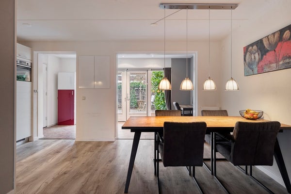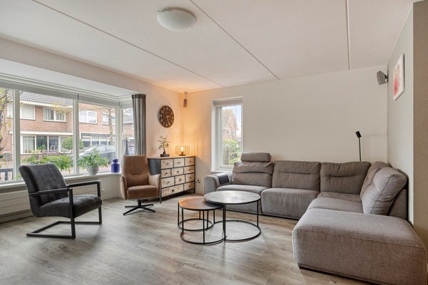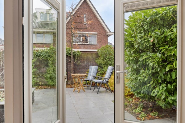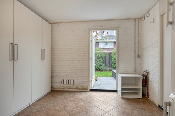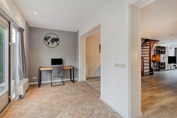 De oprit biedt de mogelijkheid voor het parkeren van drie auto’s. Ruime entree met meterkast, luxe toilet met wandtoilet en fontein (2021). De ruime woonkamer is voorzien van vloerverwarming (2021) en heeft aan de voorzijde een sfeervolle erker. De keuken (2005) ligt aan de achterzijde van de woning en is voorzien van diverse inbouwapparatuur (inductiekookplaat, afzuigkap, combi-oven, vaatwasser en een koel/vriescombinatie). De aanbouw is eveneens voorzien van vloerverwarming (2008) en is voor meerdere doeleinden te gebruiken. De openslaande deuren geven toegang tot de achtertuin die is gelegen op het noordwesten. De achtertuin is grotendeels bestraat, fraai afgewisseld met groenborders. De naastgelegen garage/berging van in totaal ca. 23 m2 bestaat uit 2 delen. Een berging en bijkeuken. De berging heeft een kanteldeur met loopdeur. De bijkeuken heeft een loopdeur naar de tuin.
