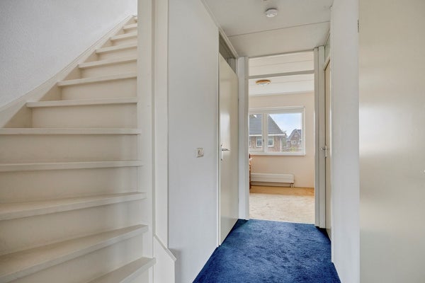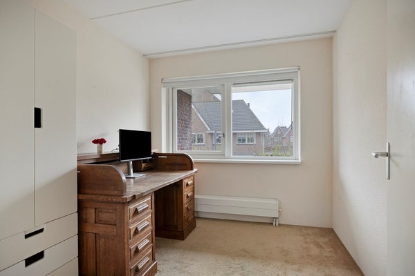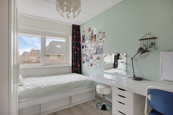 Op de eerste verdieping vindt u de overloop met toegang tot drie comfortabele slaapkamers en de badkamer. De badkamer is volledig betegeld en beschikt over een ligbad, inloopdouche, wastafelmeubel en wandtoilet. De grootste slaapkamer is gelegen over de gehele breedte aan de achterzijde van de woning en is voorzien van een schuifdeurkast. De andere twee slaapkamers zijn aan de voorzijde gesitueerd.