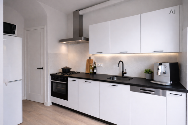 BEGANE GROND: Entree met hal, trapopgang en modern toilet met fonteintje. De lichte, uitgebouwde woonkamer heeft een houten vloer, harmonicadeuren naar de tuin. De halfopen keuken is eenvoudig, maar functioneel en beschikt over een praktische kelderkast en directe toegang tot de achtertuin. Dankzij de grote ramen is er volop daglicht en een fijn contact met buiten.