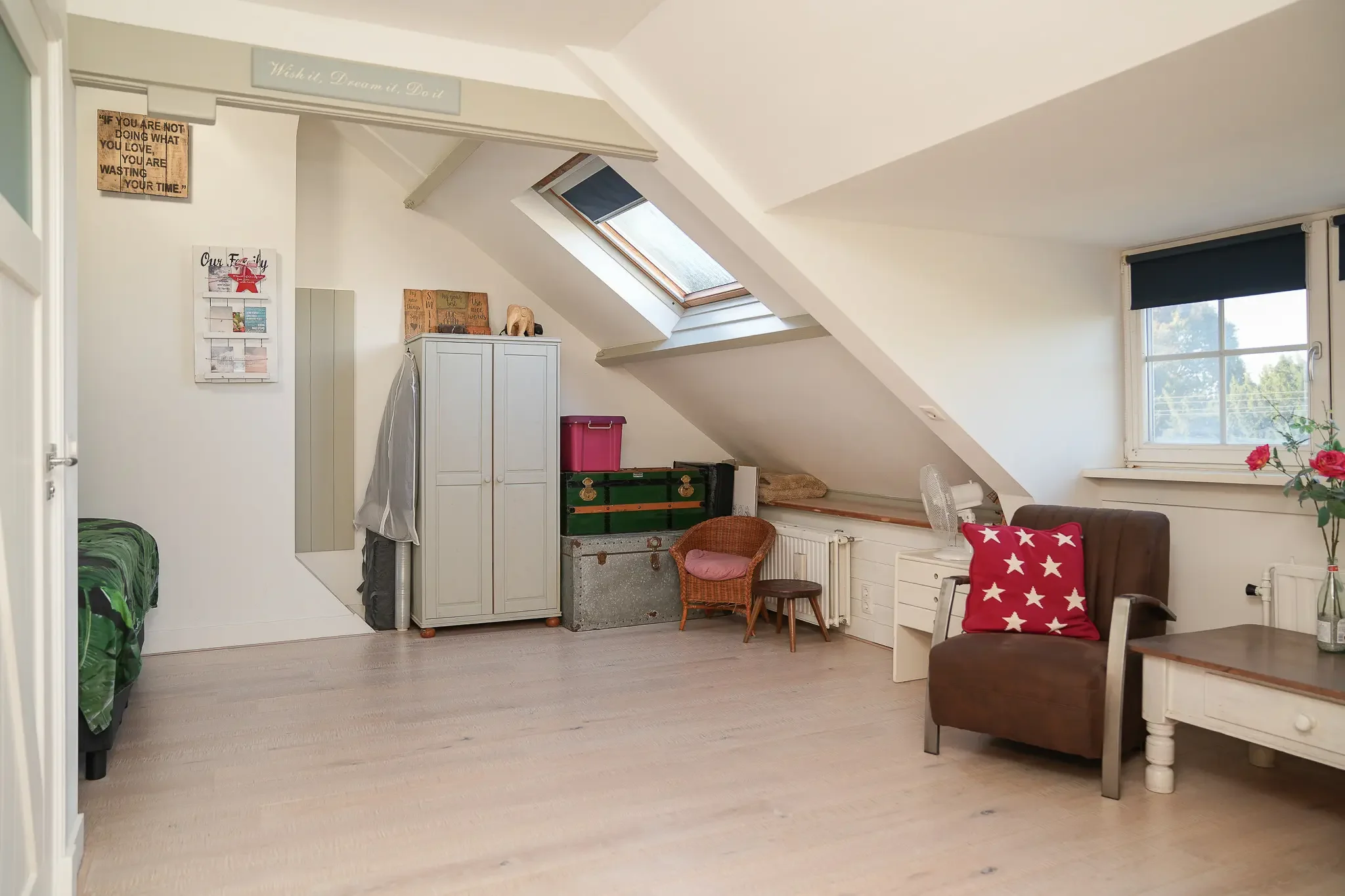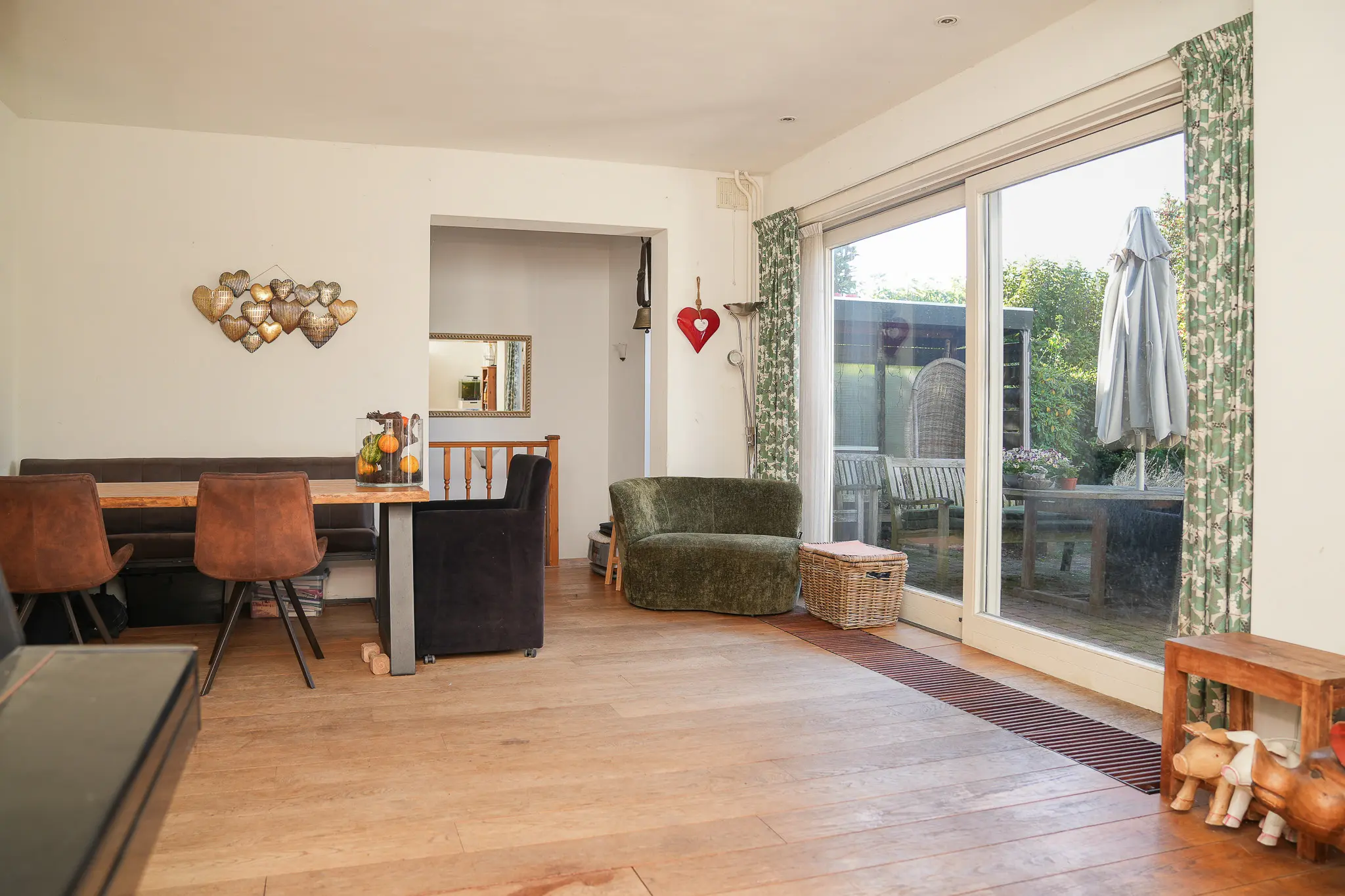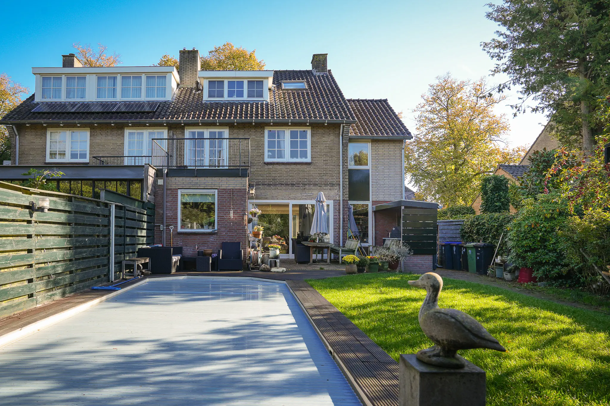 Wakker worden met zacht ochtendlicht dat over de houten vloer valt? In deze twee-onder-één-kapwoning aan de Juliana van Stolberglaan 26 in Naarden ervaart u dagelijks comfort en stijl. De ruime hal leidt naar een lichte woonkamer van bijna 40 m² met grote ramen, ideaal voor een zithoek en eettafel met uitzicht op de tuin. De achtergelegen keuken is voorzien van inbouwapparatuur, waaronder een keramische kookplaat en biedt toegang tot het terras. De zonnige achtertuin op het zuiden heeft een zwembad, jacuzzi en twee tuinhuisjes voor opslag en kantoor. Boven zijn drie slaapkamers en een ruime badkamer, terwijl de tweede verdieping een extra kamer en badkamer heeft. De woning ligt in een geliefde wijk, dichtbij winkels en het Naardermeer, met goede verbindingen naar de A1.